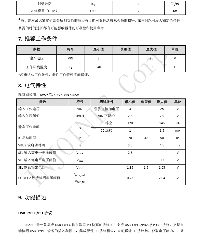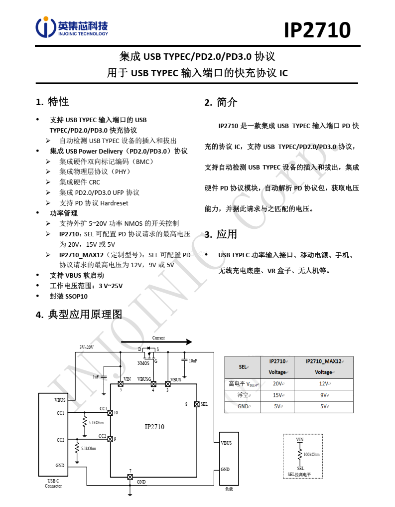IP2710,用于 USB TYPEC 输入端口的快充协议芯片规格书下载