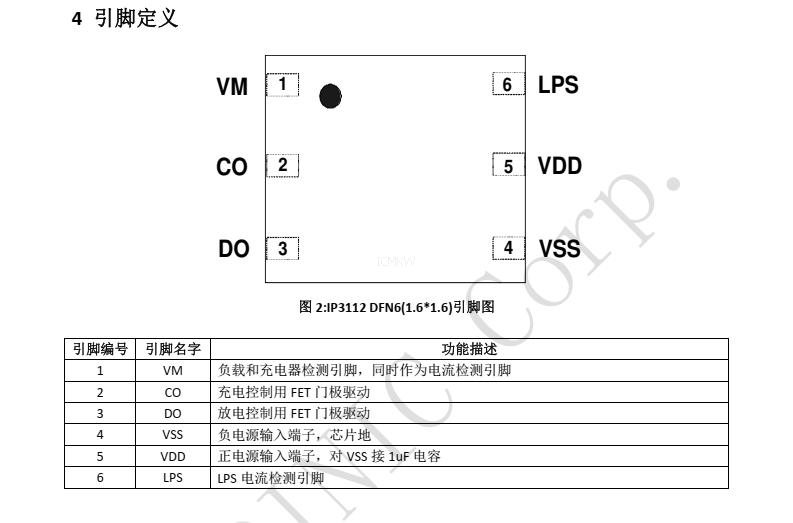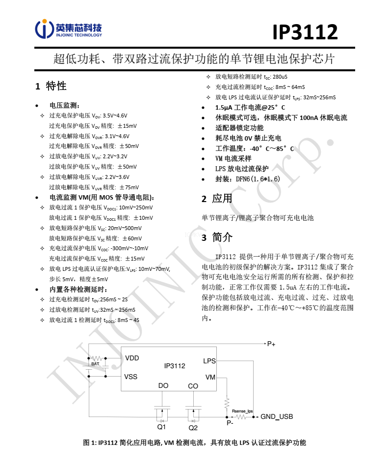 IP3112,超低功耗、带双路过流保护功能的单节锂电池保护芯片规格书下载