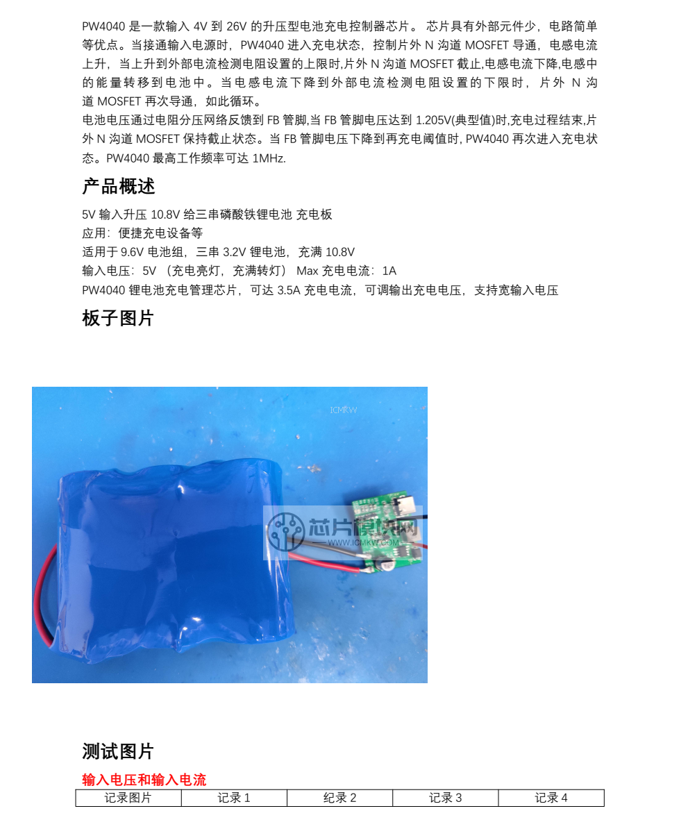 PW4040三节磷酸铁锂充电-芯片测试数据