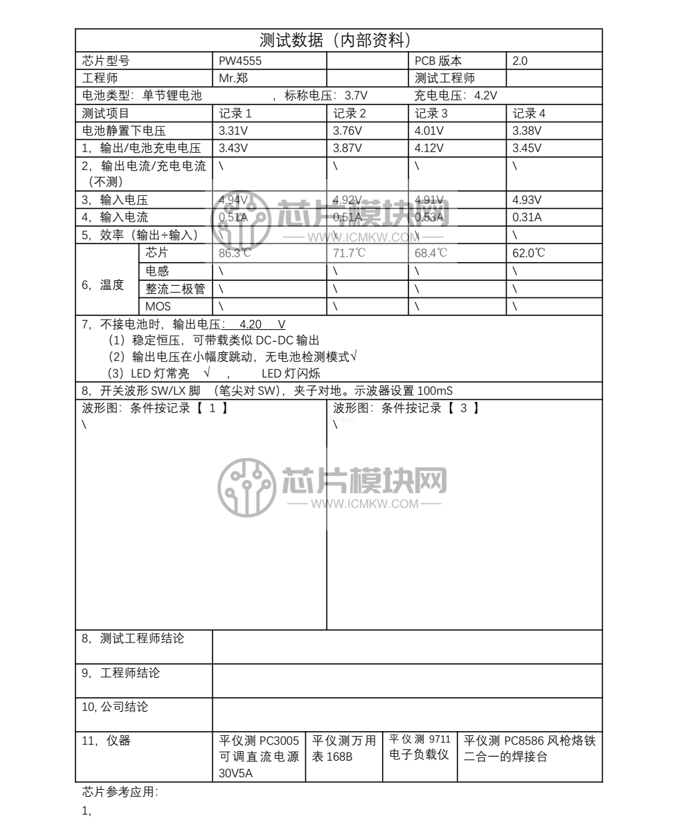 PW4555单节锂电池充电-芯片测试数据