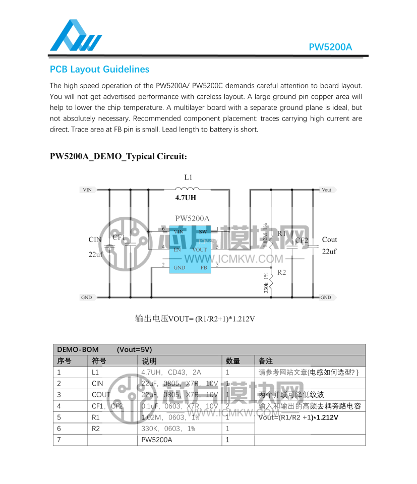 PW5200A的DEMO板资料(PCB文件+BOM+原理图)