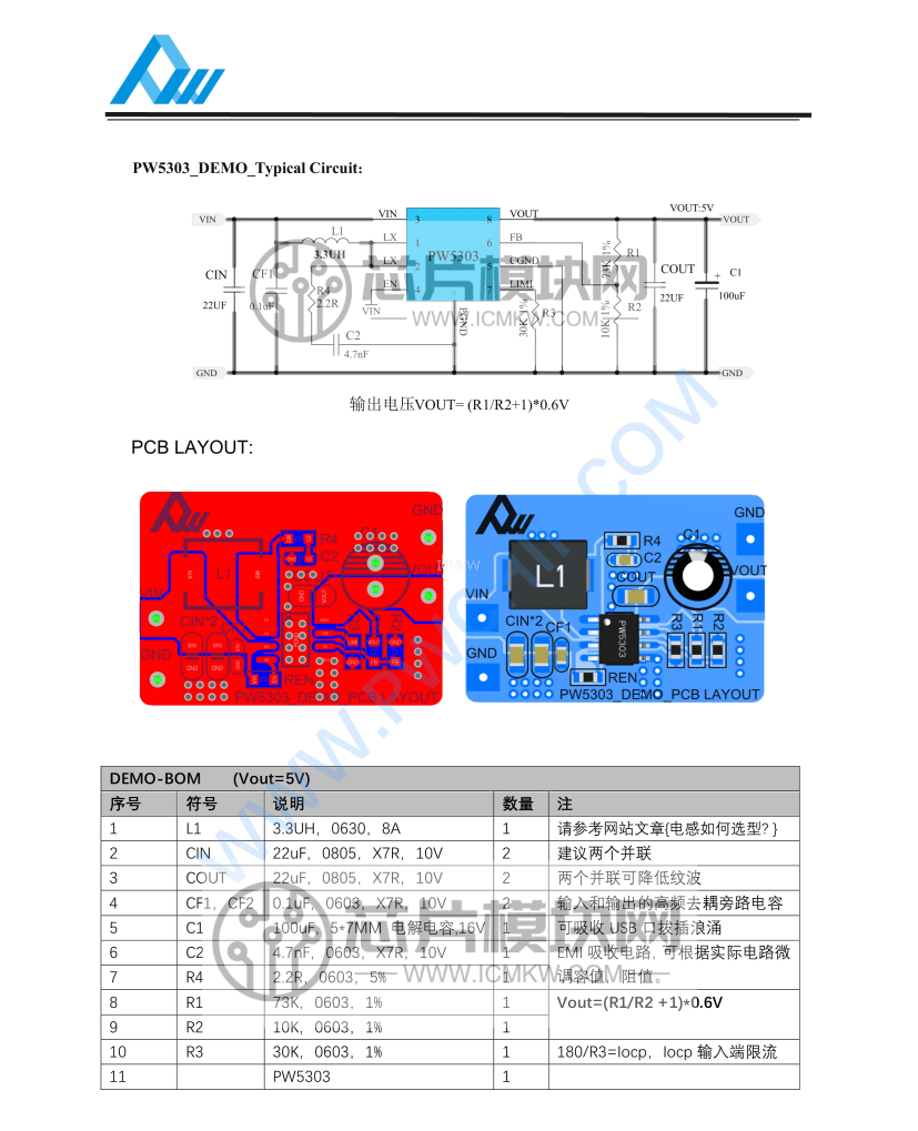 PW5303的DEMO板资料(PCB文件+BOM+原理图)