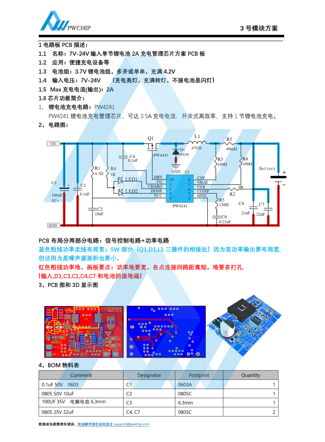 7V-24V 输入单节锂电池 2A 充电管理芯片方案 PCB 板-3号 PW4241芯片