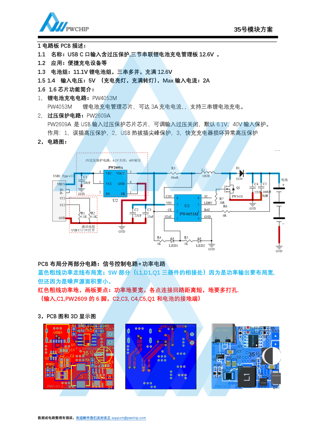 USB C 口输入含过压保护,三节串联锂电池充电管理板 12.6V-35号 PW2609A芯片
