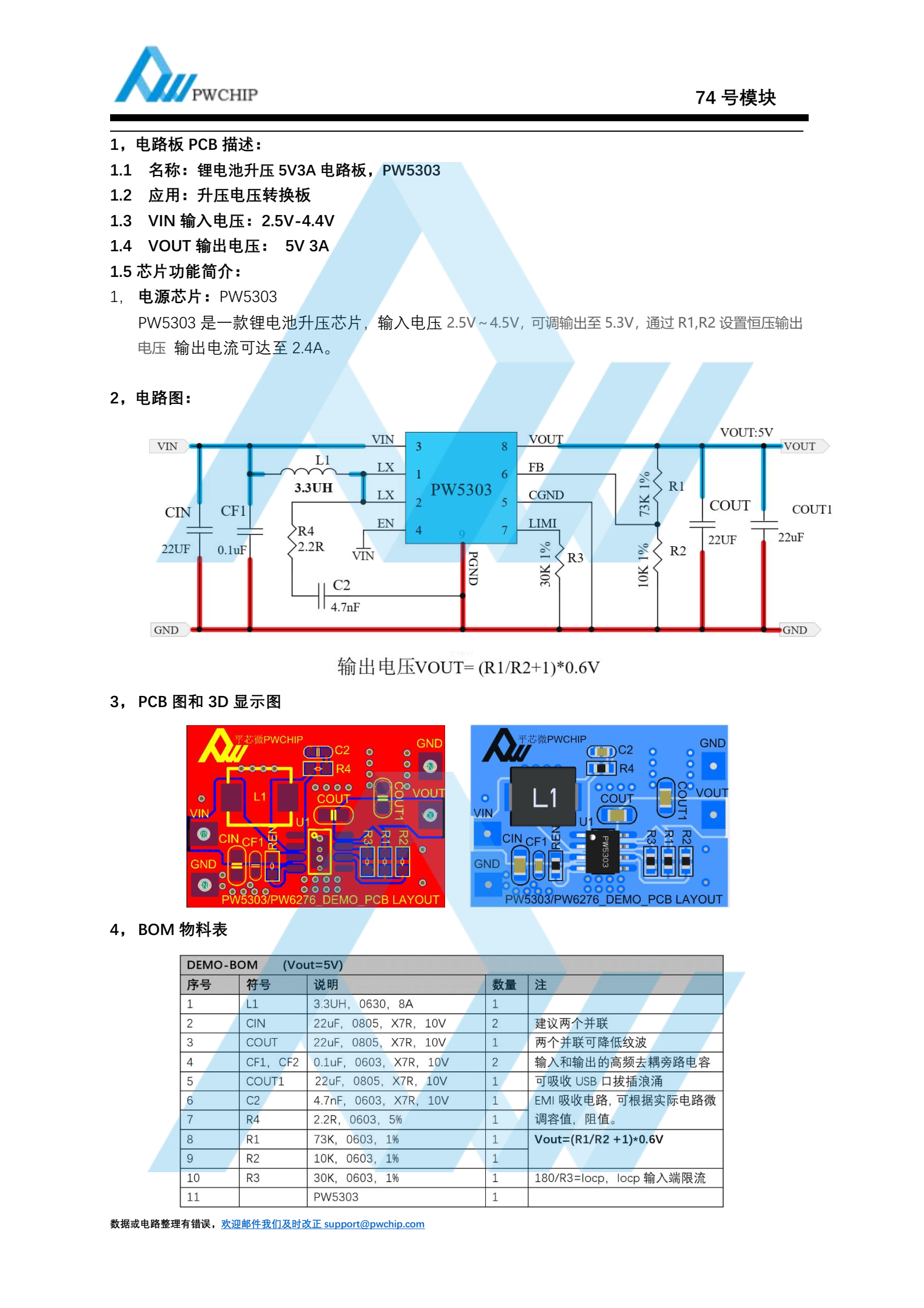 锂电池升压 5V3A 电路板, PW5303-74号 PW5303芯片