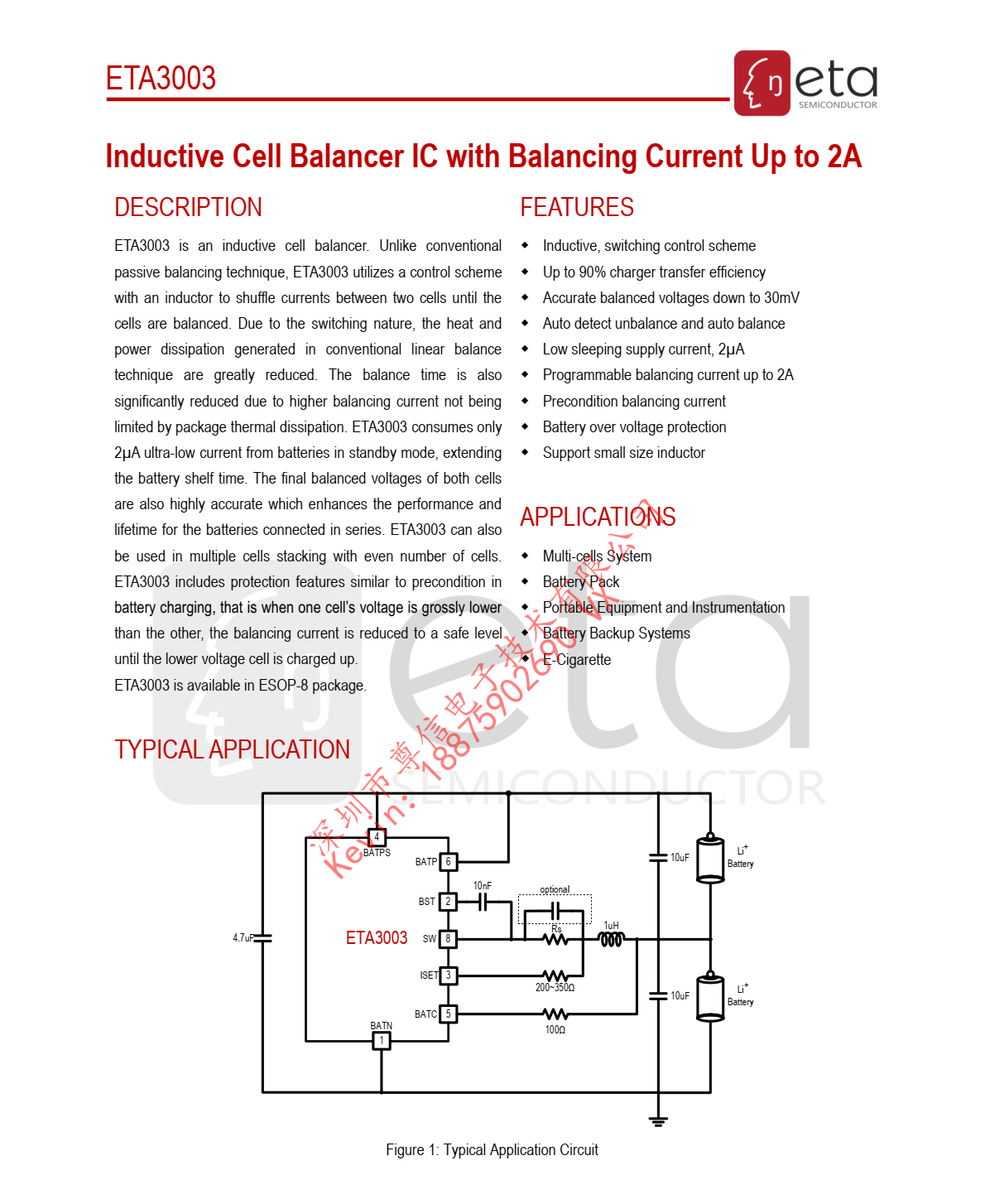 ETA3003,平衡电流高达2A的电感式单元平衡器芯片PDF规格书下载