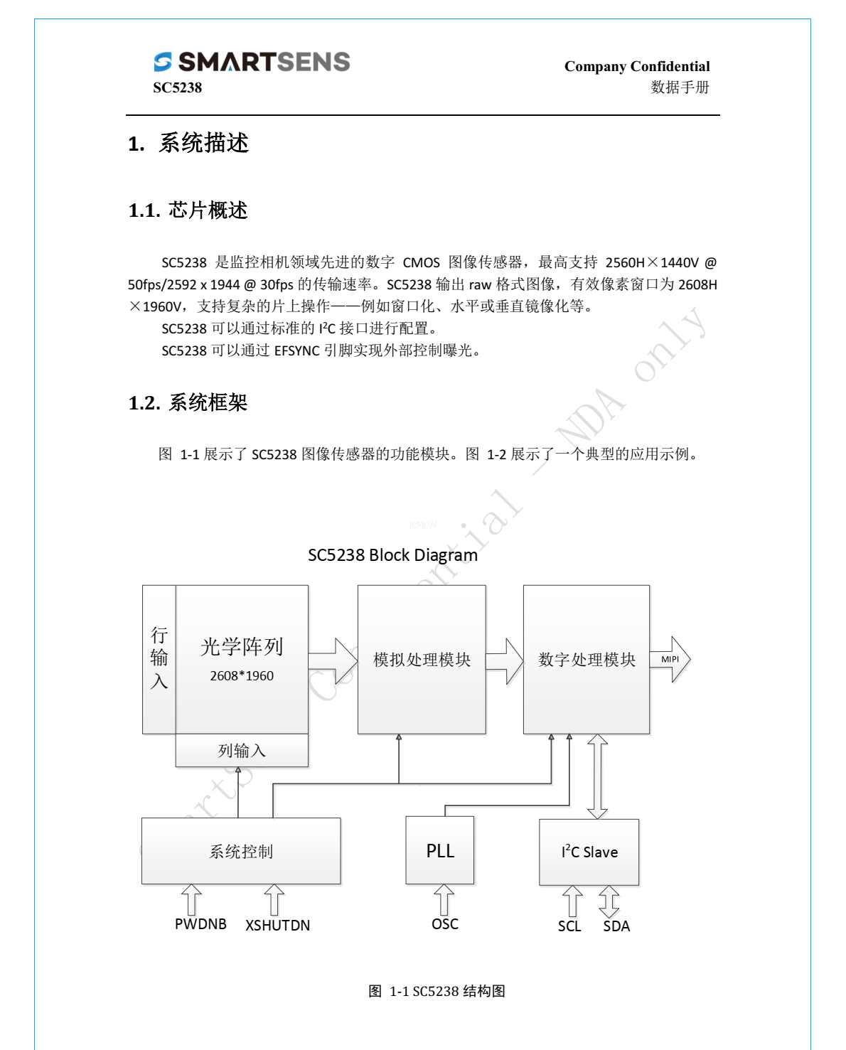 SC5238,监控相机领域先进的数字 CMOS 图像传感器PDF规格书下载