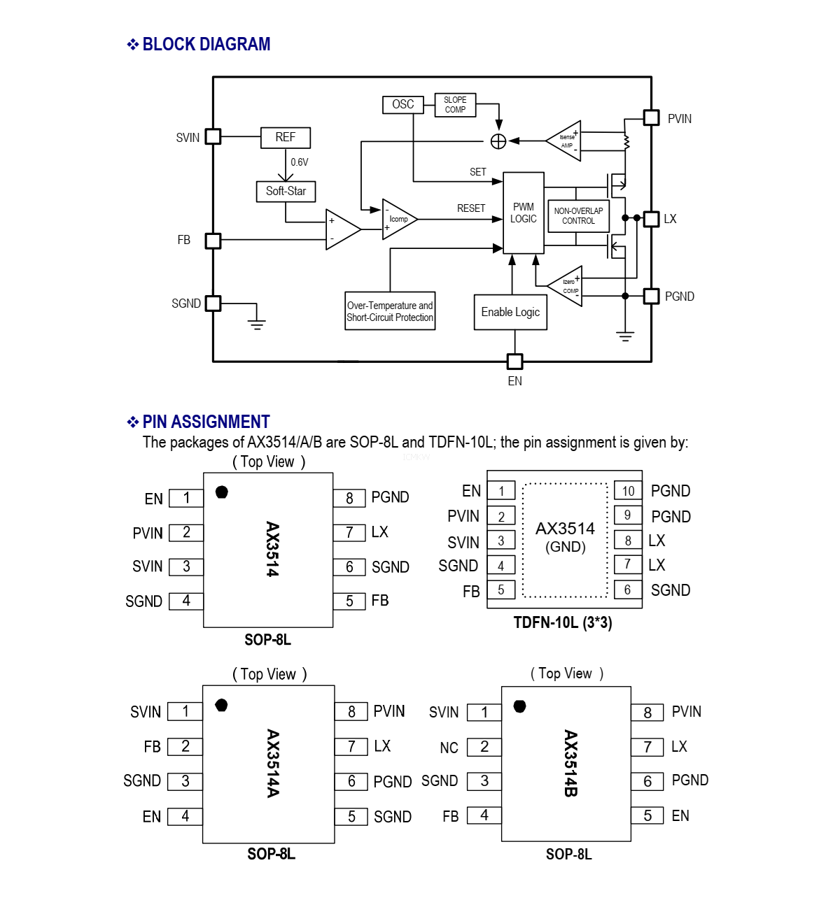 AX3514,1.2MHz,2A同步降压转换器芯片PDF规格书下载