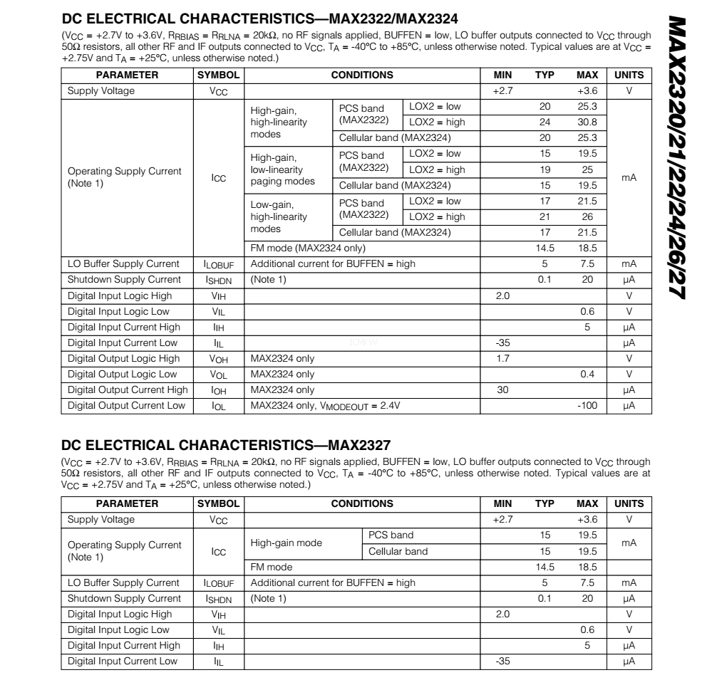 MAX2323,可调,高线性, SiGe双频带LNA/混频器芯片PDF规格书下载
