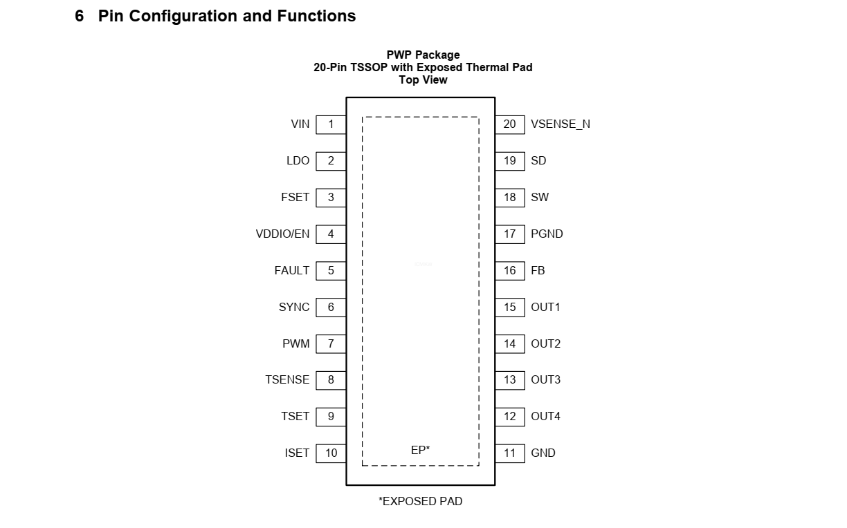 LP8861QPWPRQ1,有四个100mA通道的低EMI 汽车LED 驱动器芯片PDF规格书下载