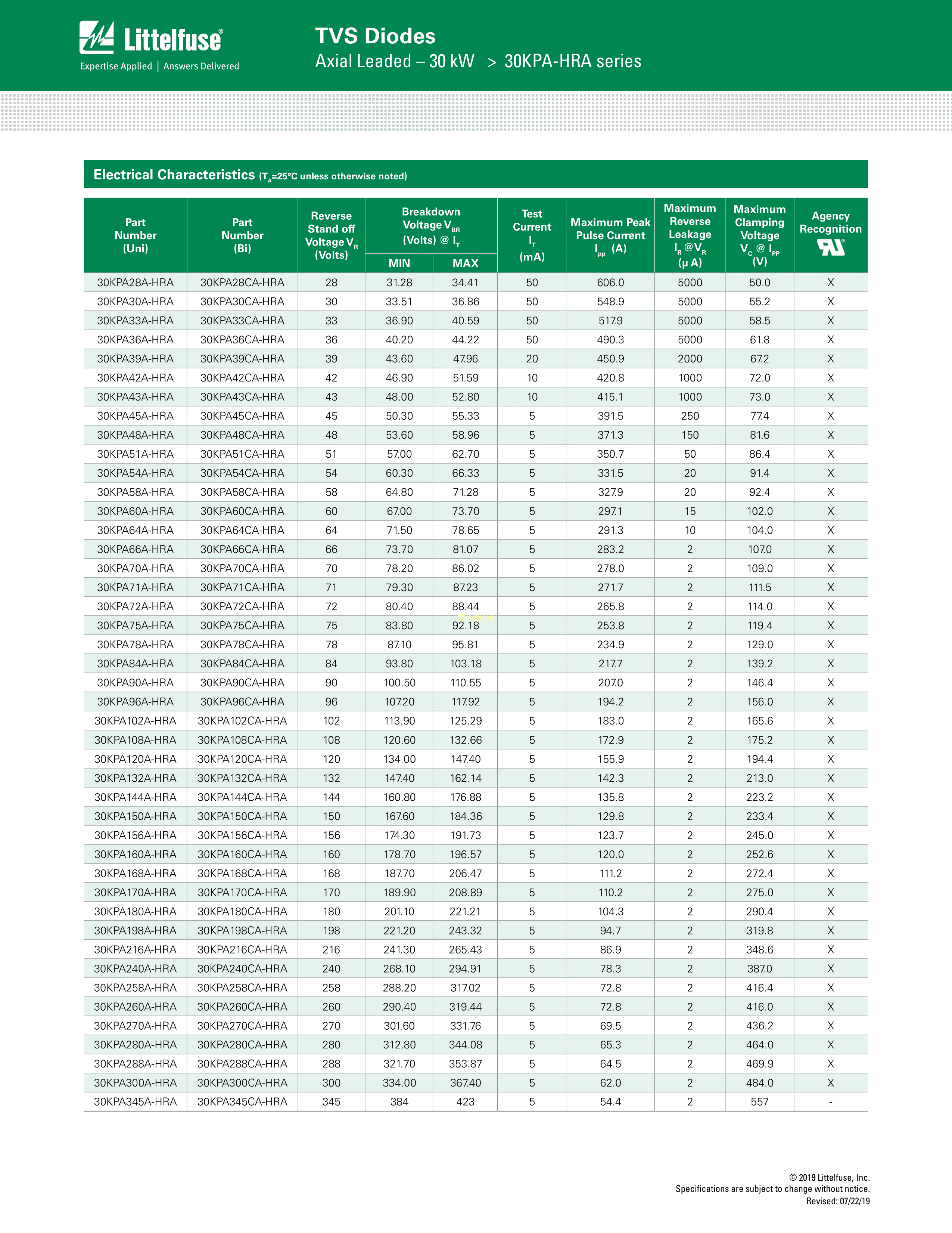 30KPA28A-HRA数据手册Axial封装Littelfuse(美国力特)PDF规格书,中英文下