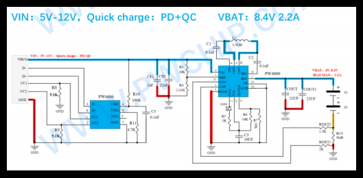 随着便携式电子设备、电动工具、蓝牙音箱等产品对电池容量和续航要求的不断提升,双节串联锂电池(标称电压 7.4V,充满电压8.4V)的应用日益广泛。然而,如何从常见的5V USB或适配器电源,高效、安全、稳定地为两节串联电池充电,成为系统设计的关键挑战。本文将聚焦于 5V升压8.4V2A充电芯片PW4253 ,并对比分析同厂家的 PW4584A与PW4000芯片,为工程师提供完整的选型与设计参考。