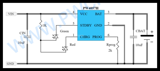 2. PW4057H:双指示灯高耐压线性充电器