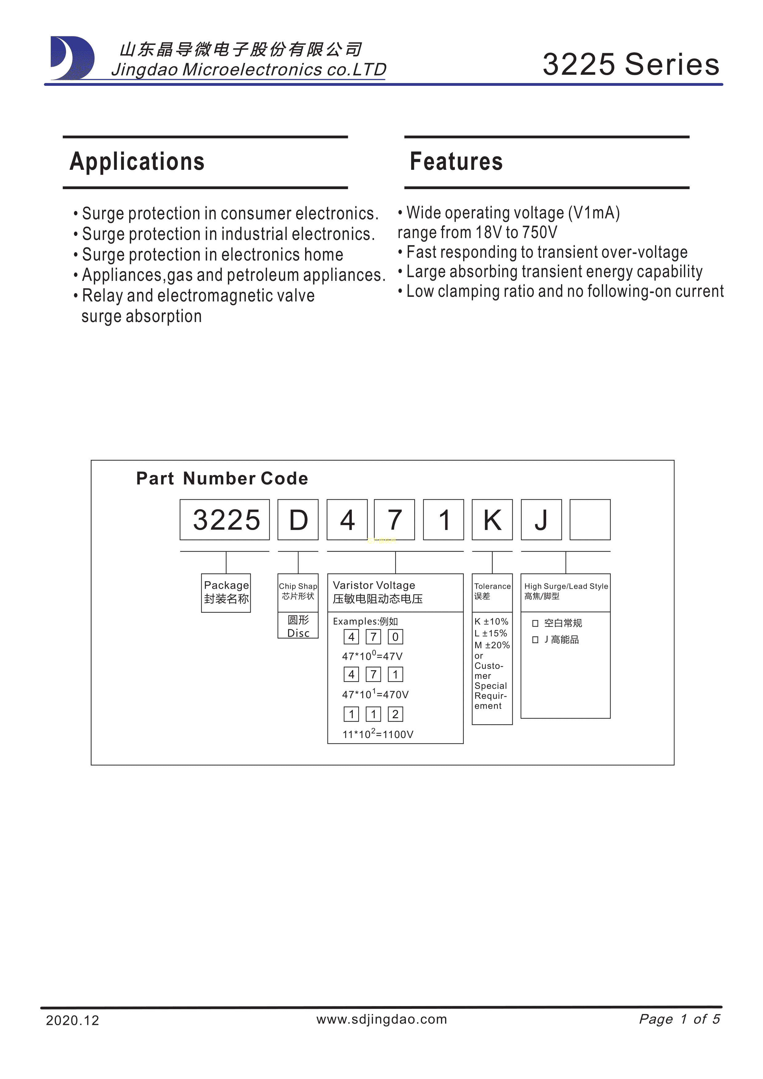 3225D471KJ数据手册3225封装晶导微电子PDF规格书,中英文下载