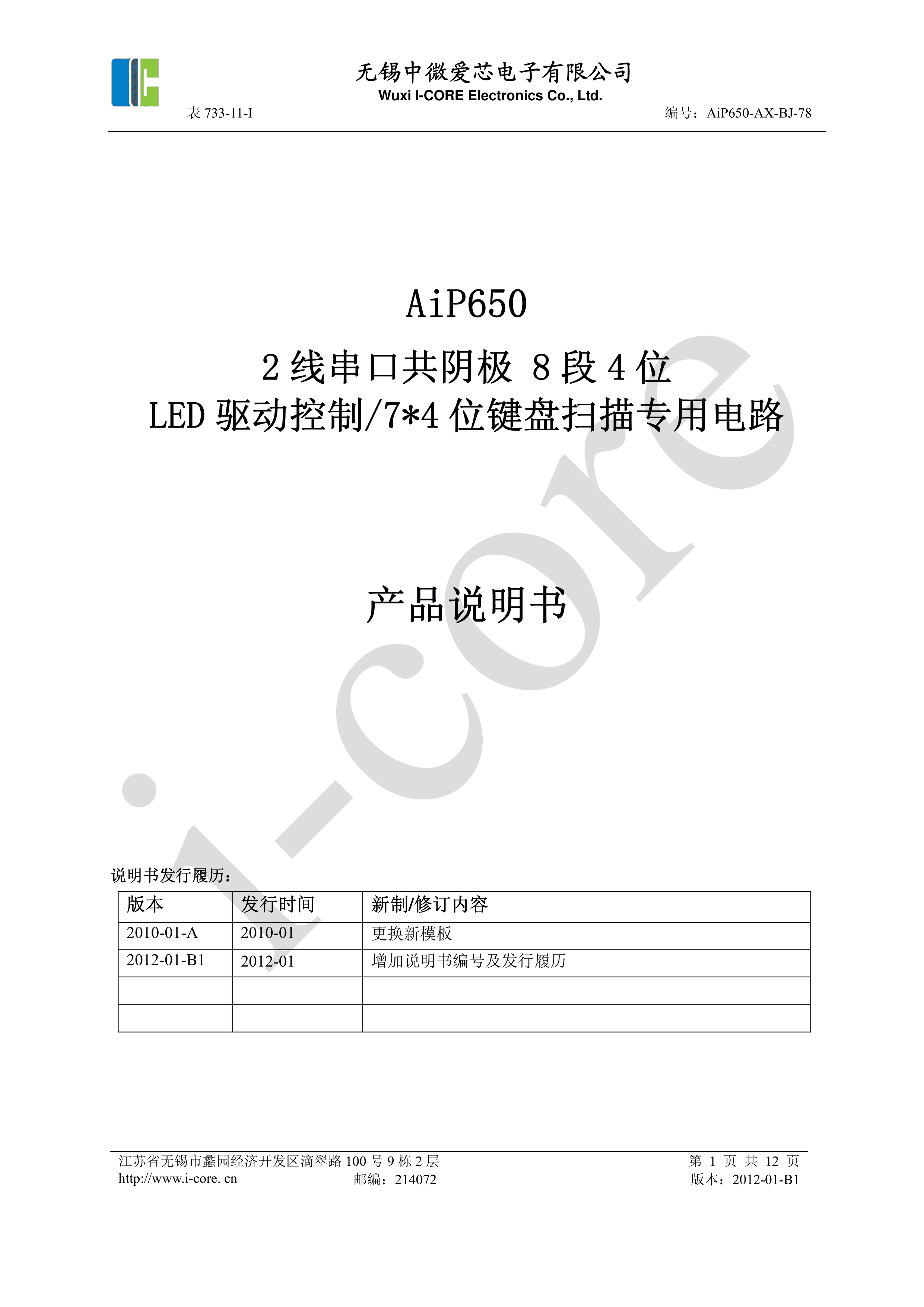 AiP650数据手册SOP-16封装I-CORE(中微爱芯)PDF规格书,中英文下载