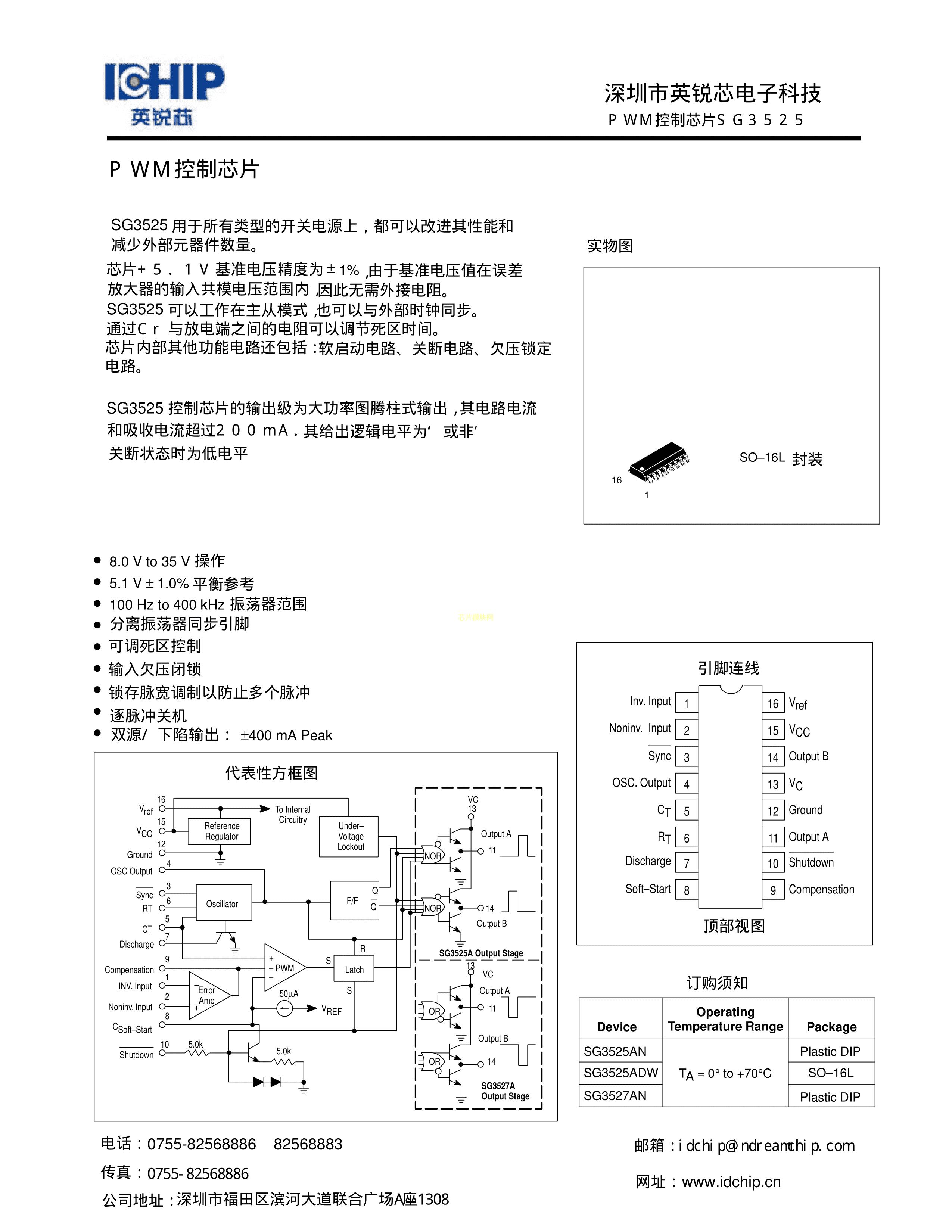 3525数据手册SOP-16封装IDCHIP(英锐芯)PDF规格书,中英文下载