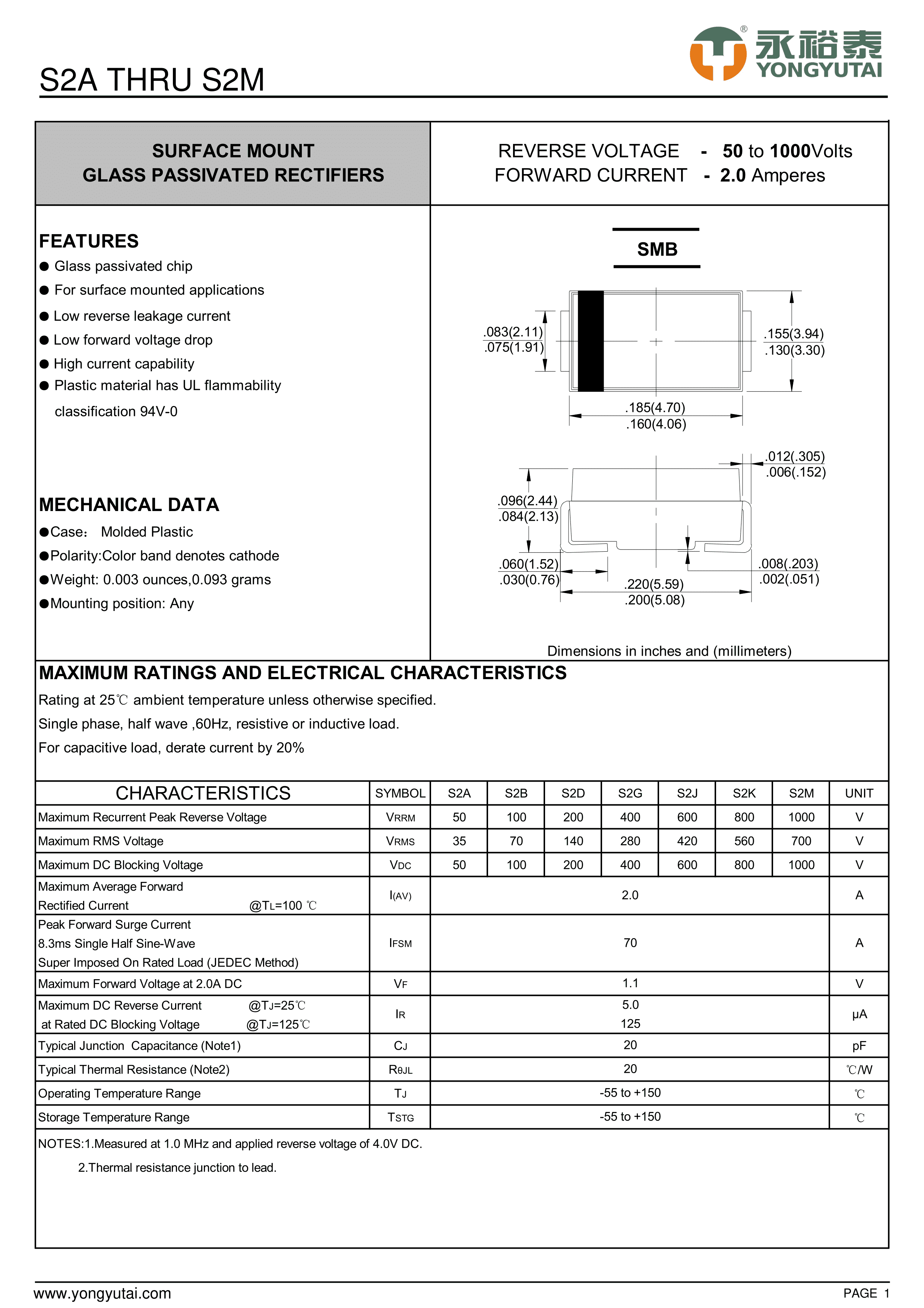 S2M数据手册SMB封装YONGYUTAI(永裕泰)PDF规格书,中英文下载