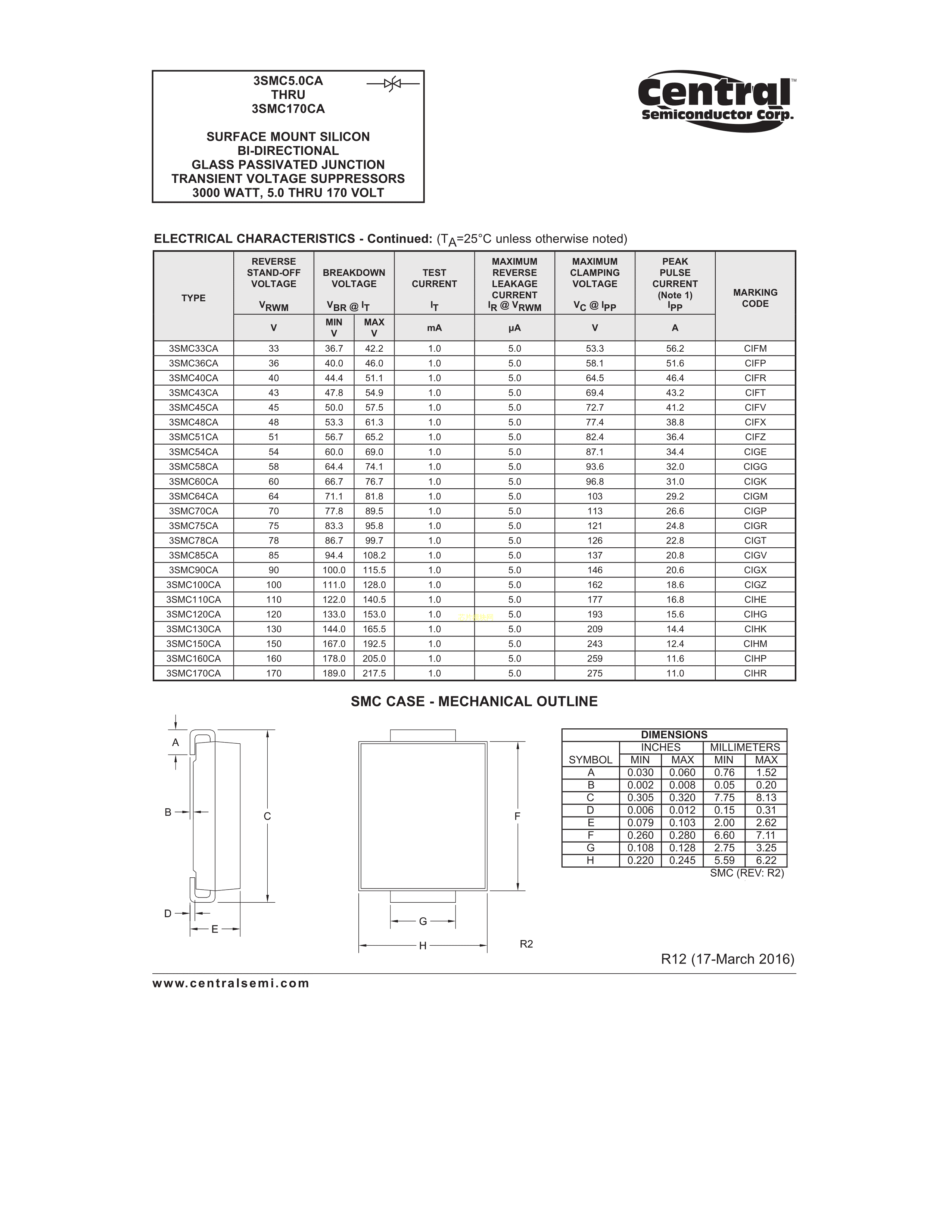3SMC36CABKPBFREE数据手册SMC封装Central(中环)PDF规格书,中英文下载