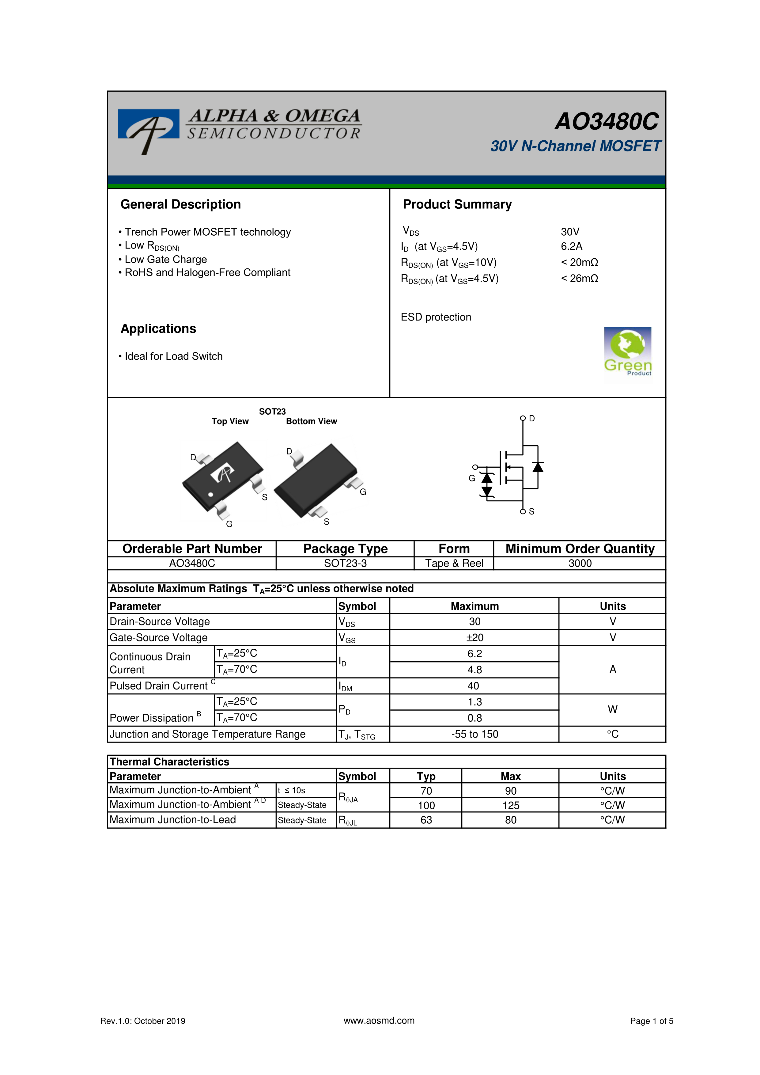 AO3480C数据手册SOT-23封装AOSPDF规格书,中英文下载