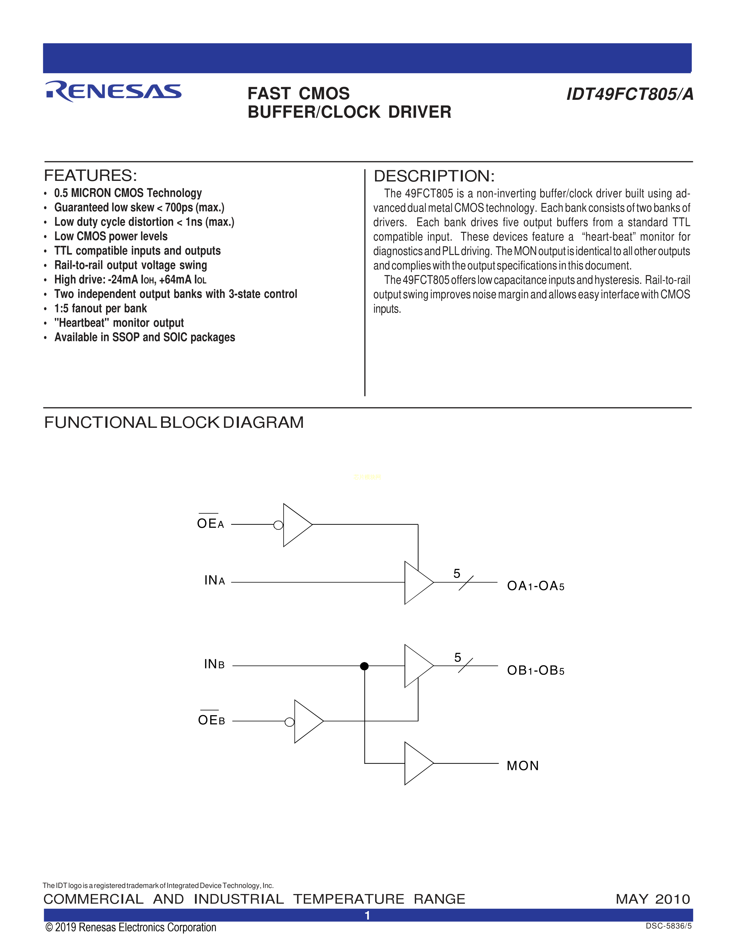 49FCT3805ASOG数据手册SOIC-20封装RENESAS(瑞萨)-IDTPDF规格书,中英