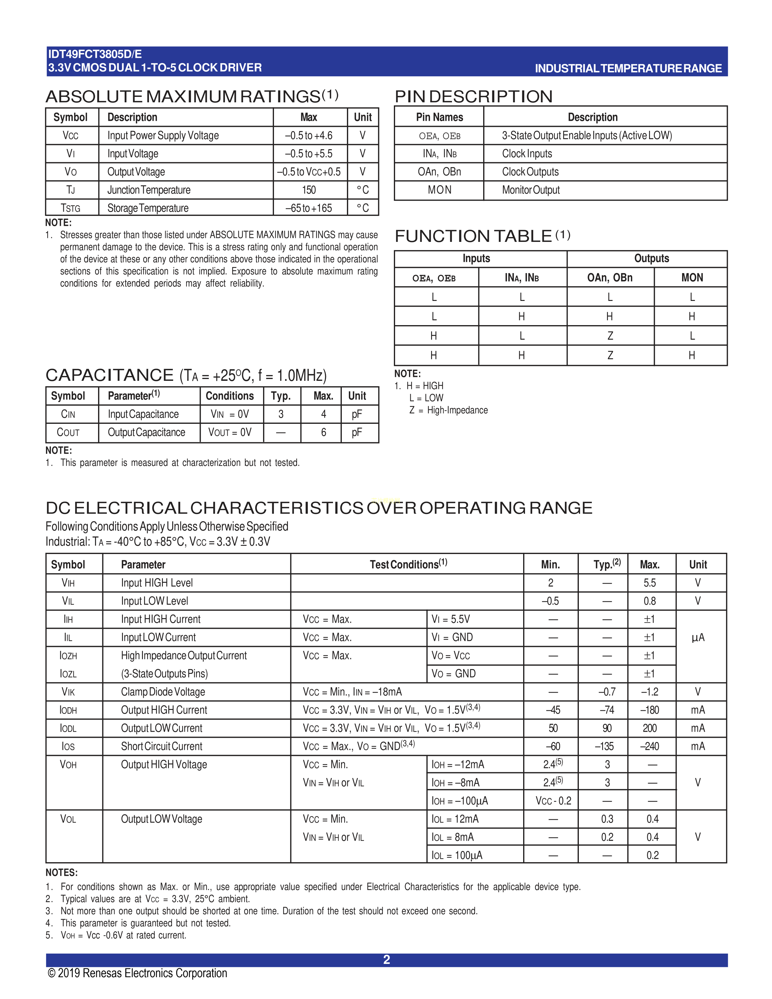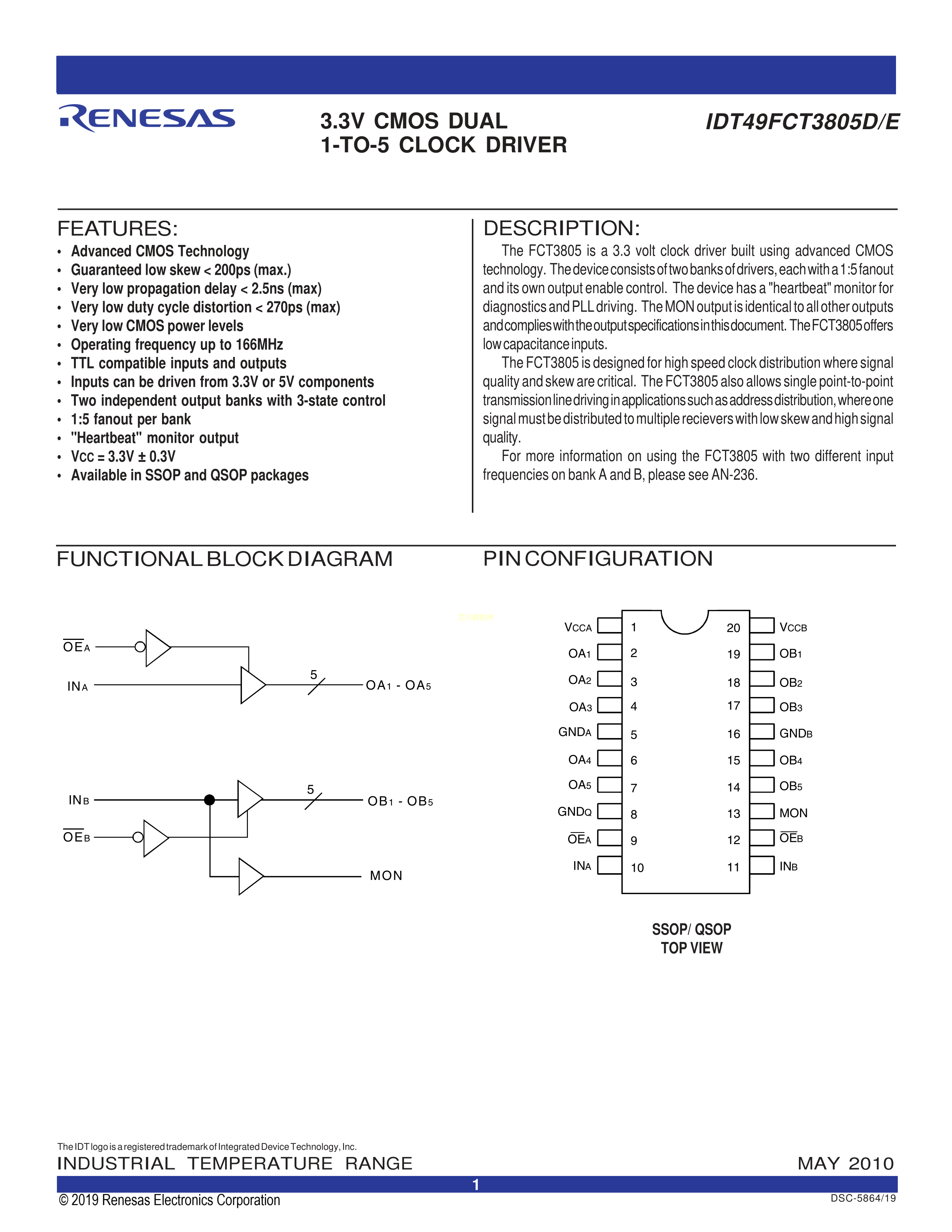 49FCT3805DPYGI8数据手册SSOP-20封装RENESAS(瑞萨)-IDTPDF规格书,