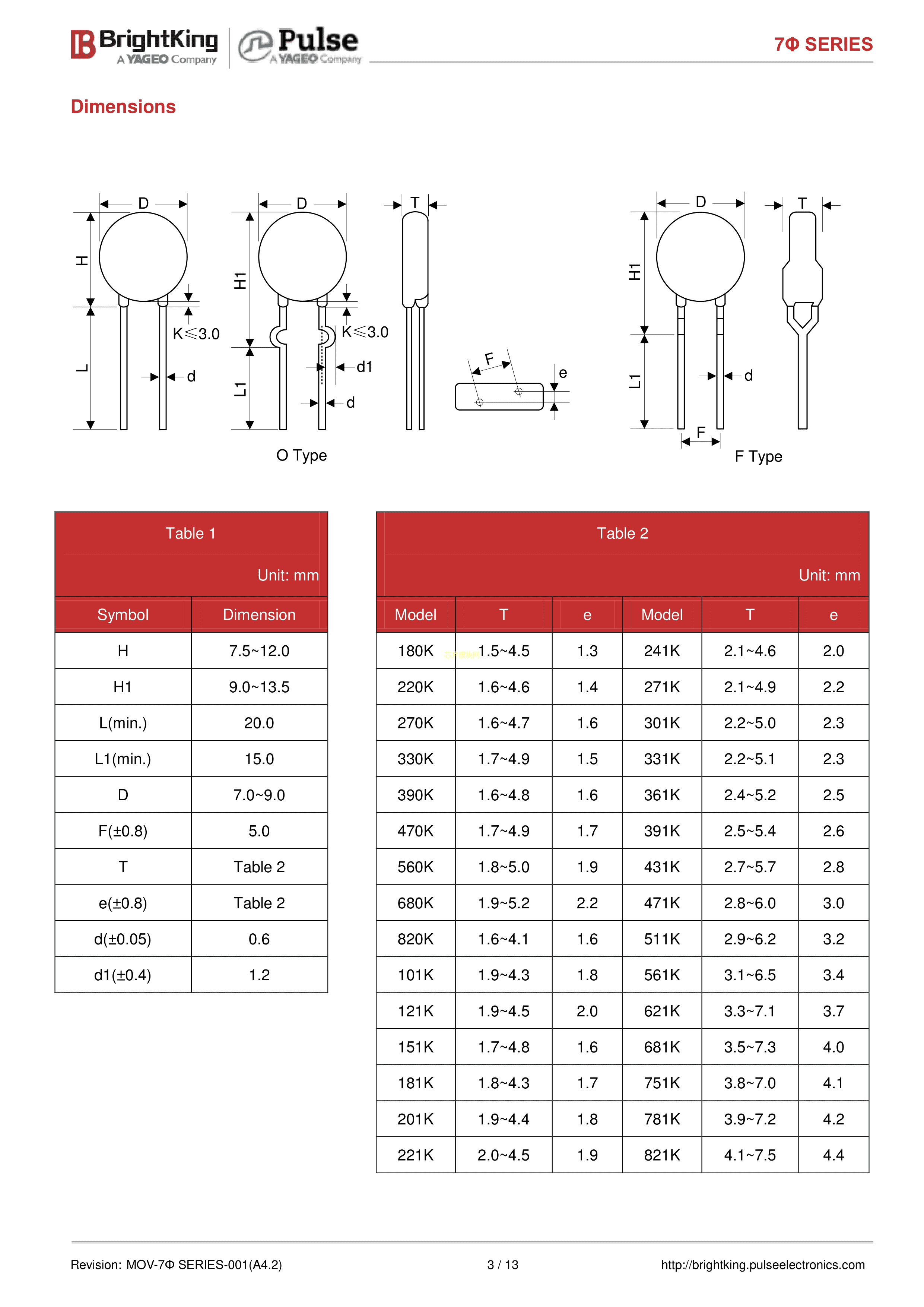 511KD07J-TR数据手册径向引线P5.0mm封装Brightking(台湾君耀)PDF规格书,中英文下载