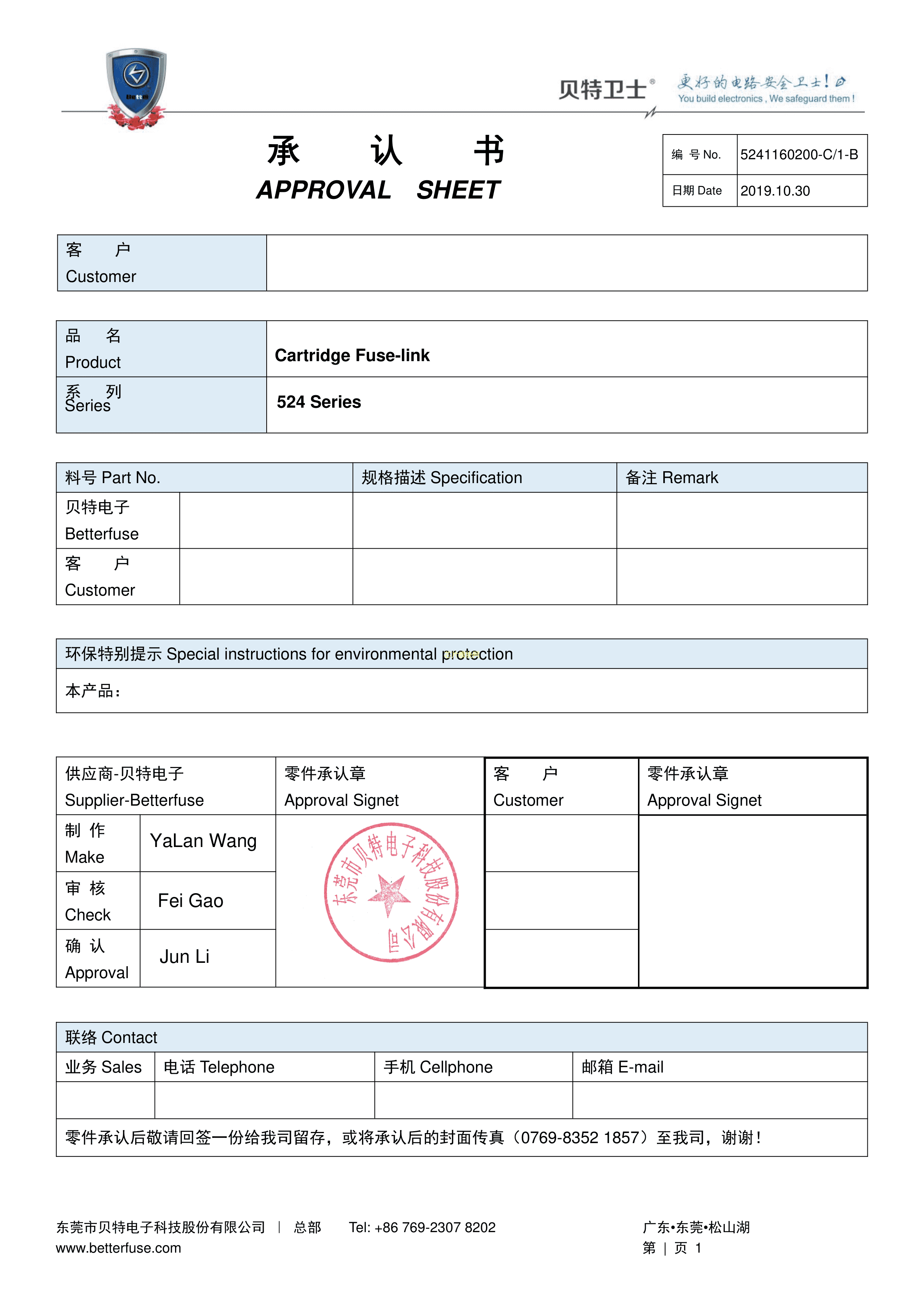 524-6.3A-250V数据手册管5x20mm封装Better(贝特)PDF规格书,中英文下载