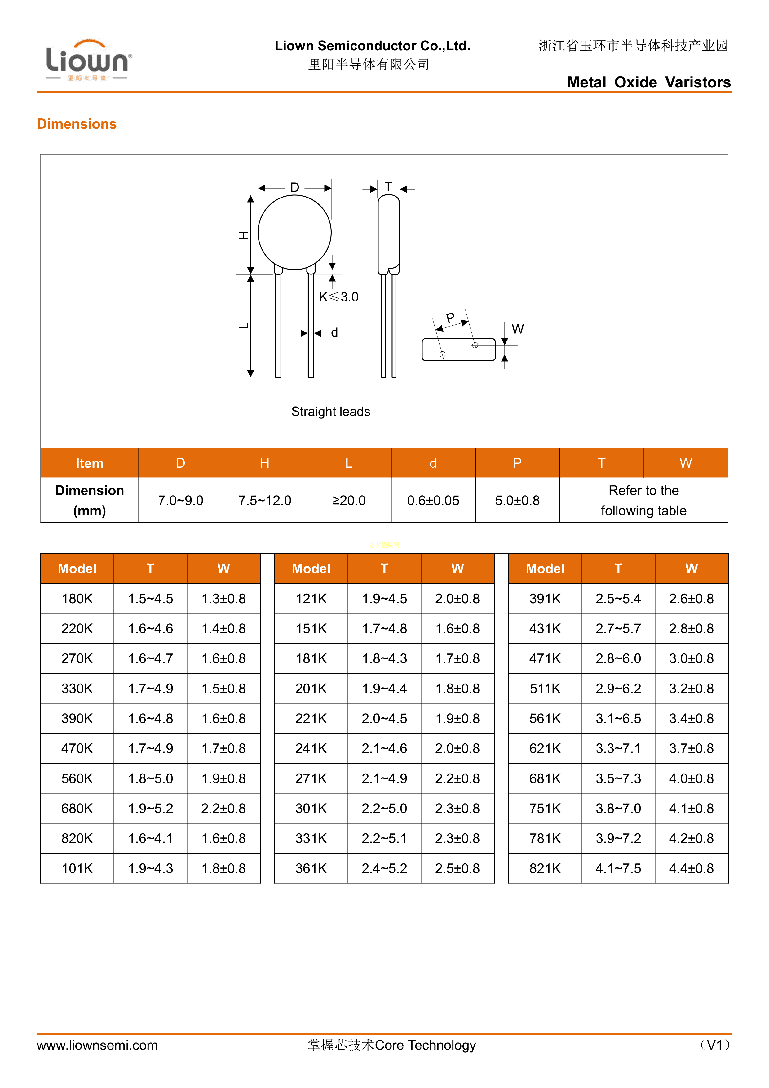 560KD07J数据手册径向引线封装Liown(里阳半导体)PDF规格书,中英文下载