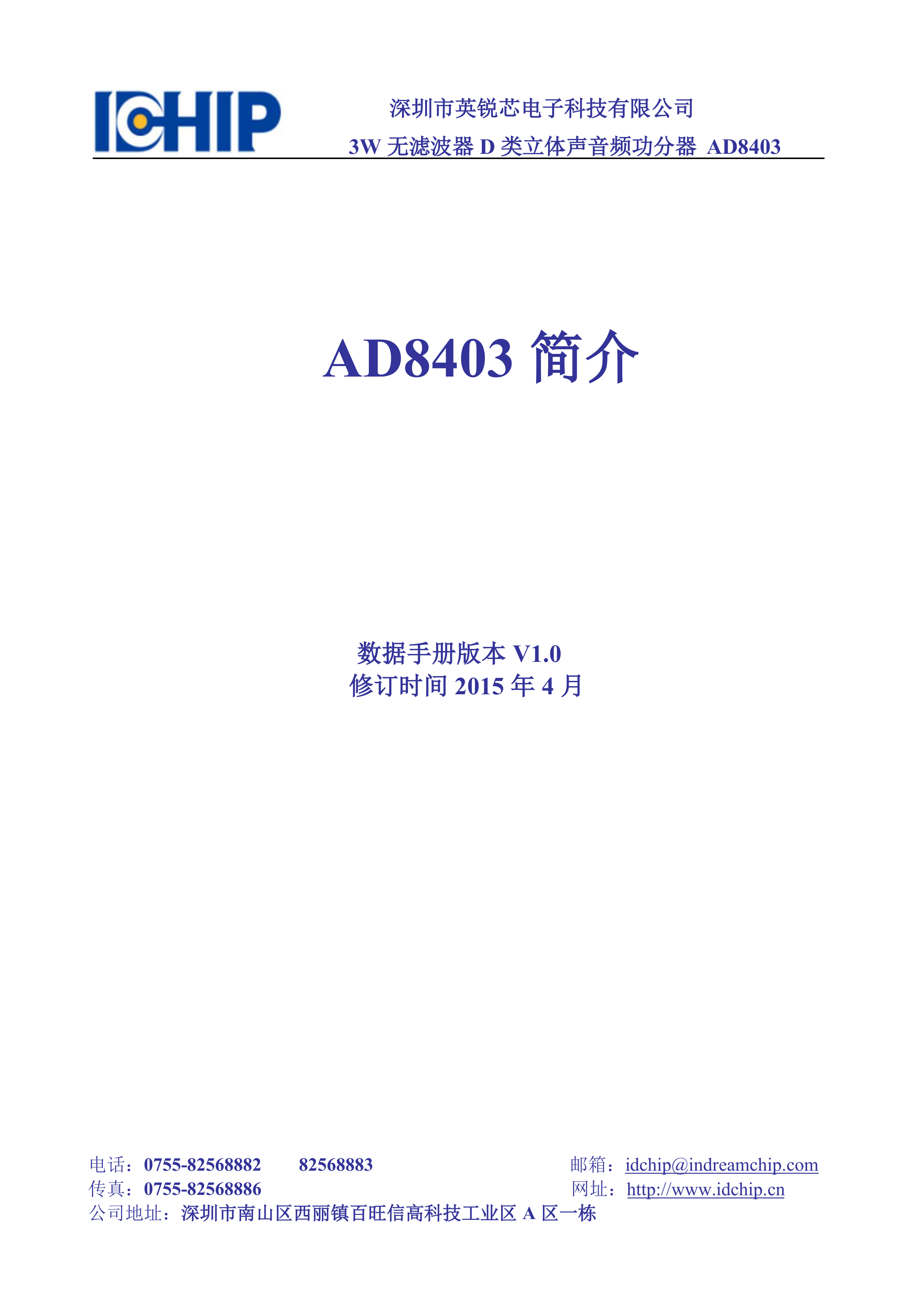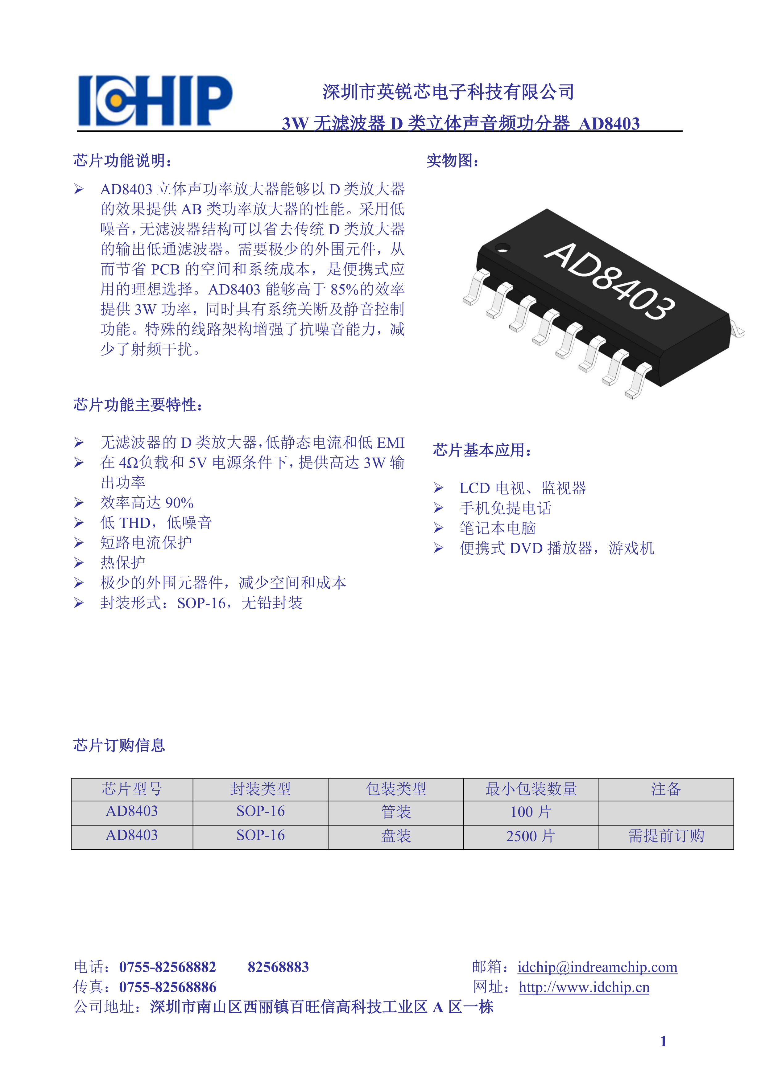 AD8403数据手册SOP-16封装IDCHIP(英锐芯)PDF规格书,中英文下载