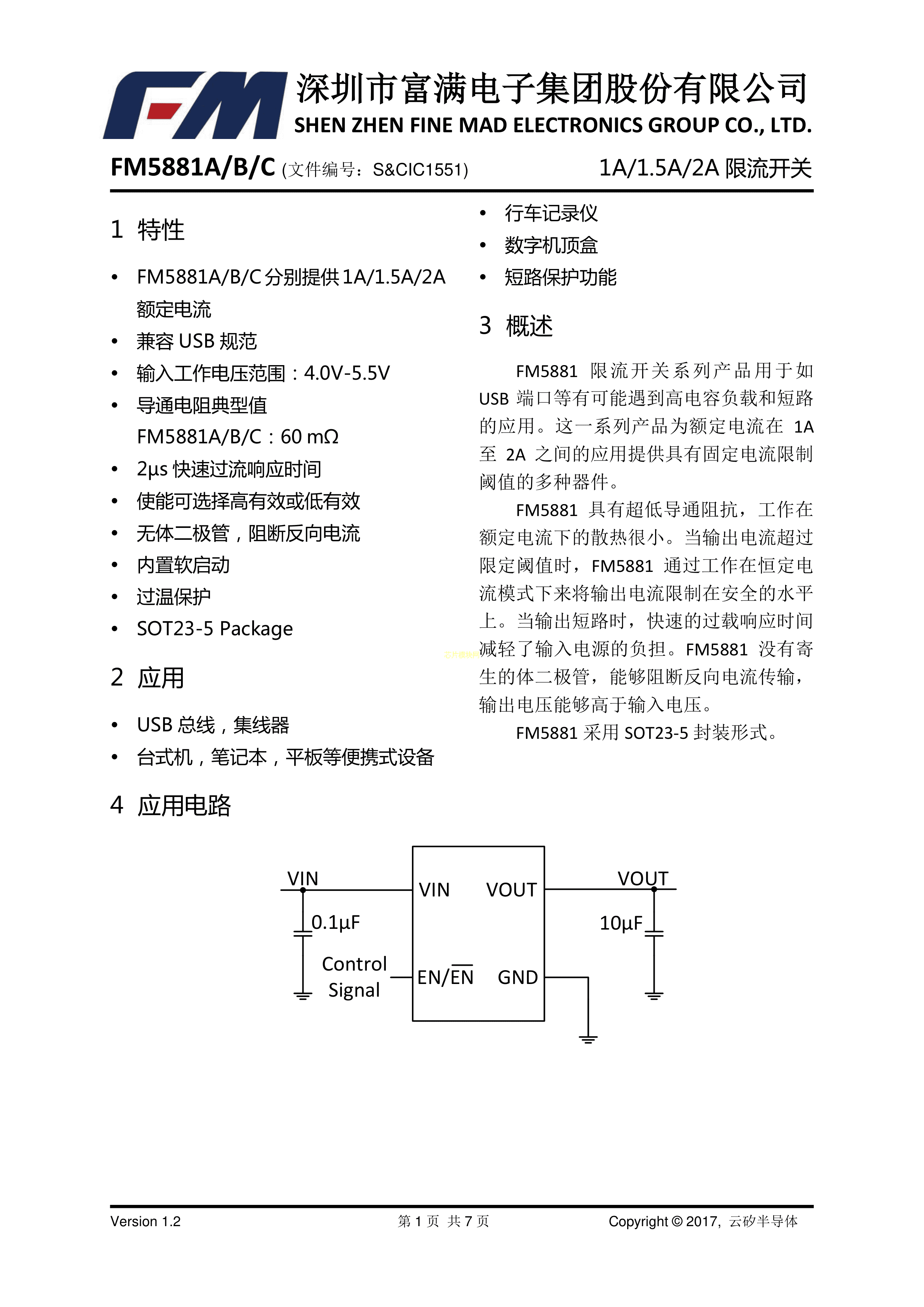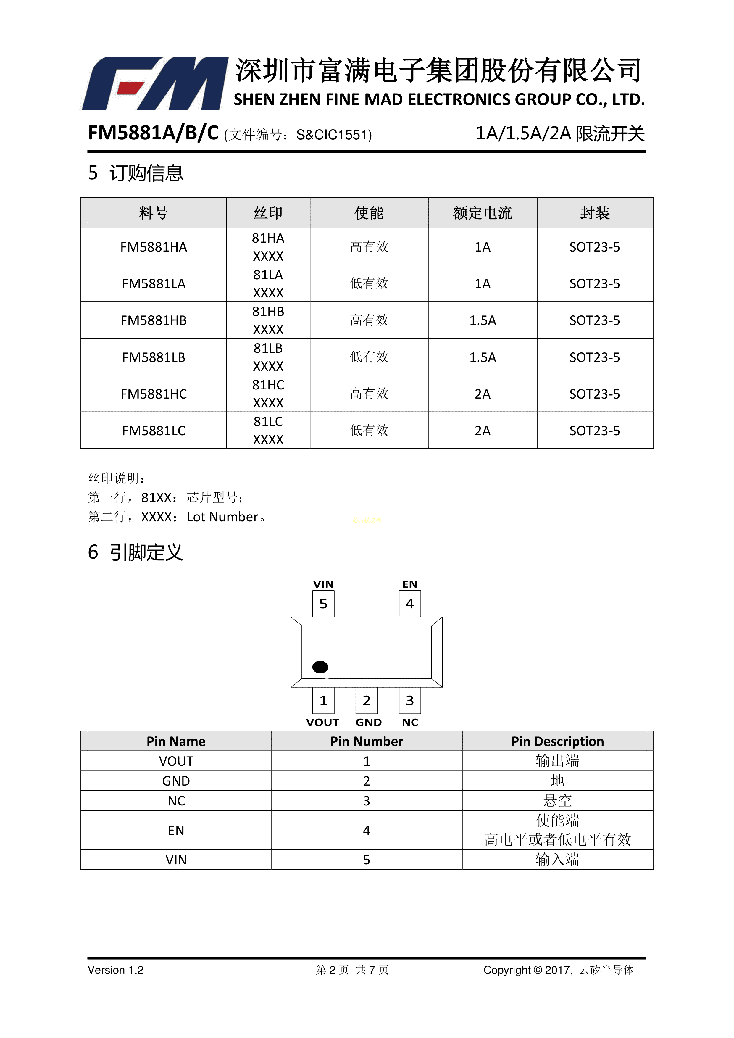 5881HB数据手册SOT-23-5封装FM(富满)PDF规格书,中英文下载