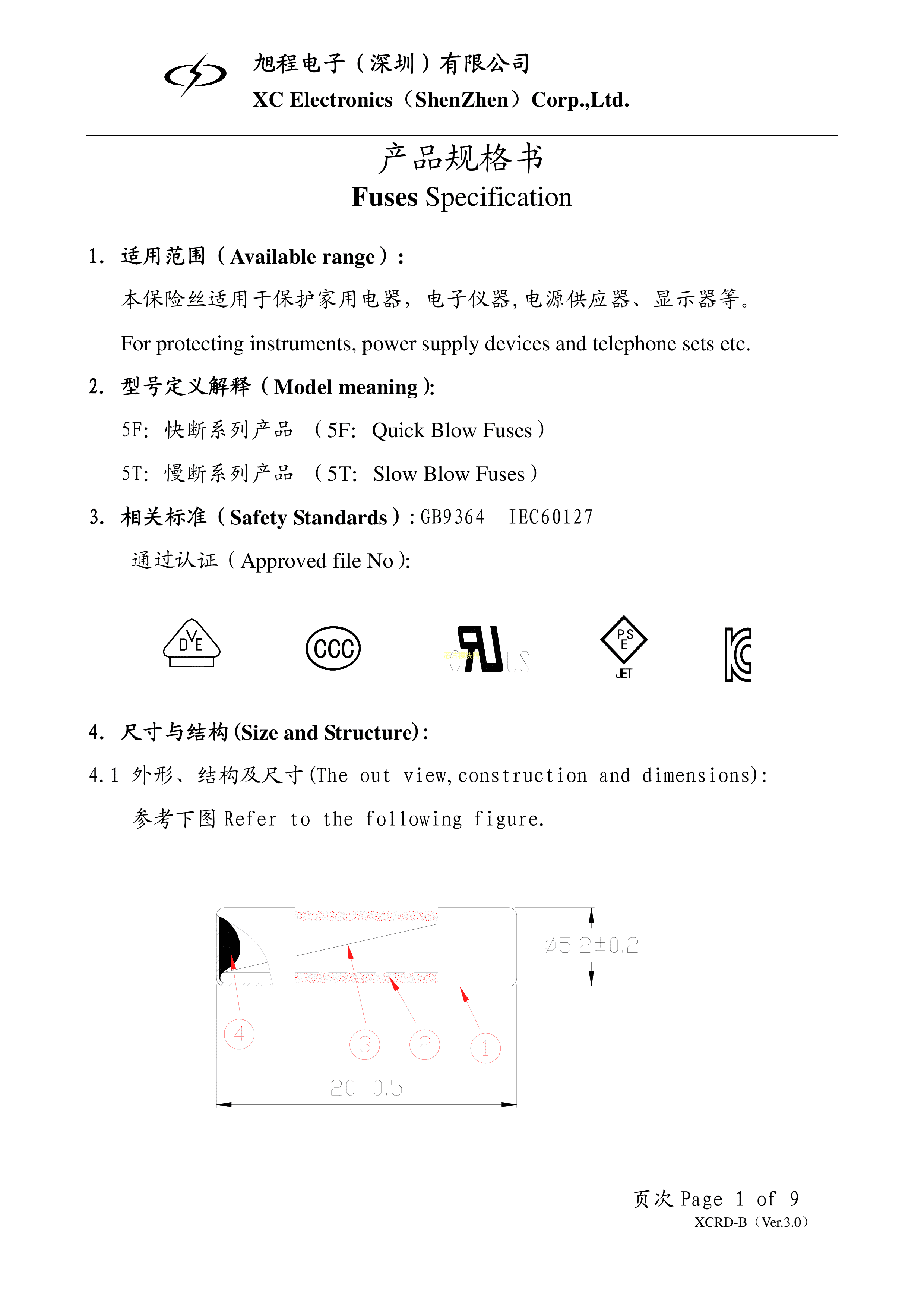 5F.1000210000R1数据手册管5.2x20mm封装xcfuse(旭程)PDF规格书,中英文下载