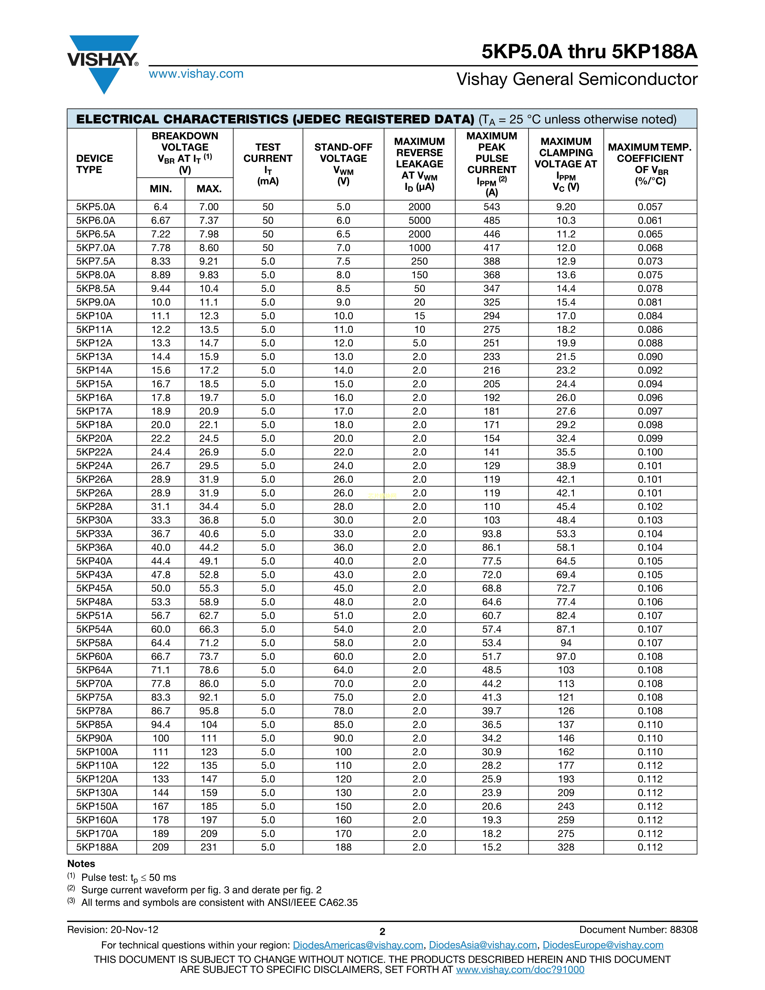 5KP170A-E3-51数据手册Axial封装VISHAY(威世)PDF规格书,中英文下载