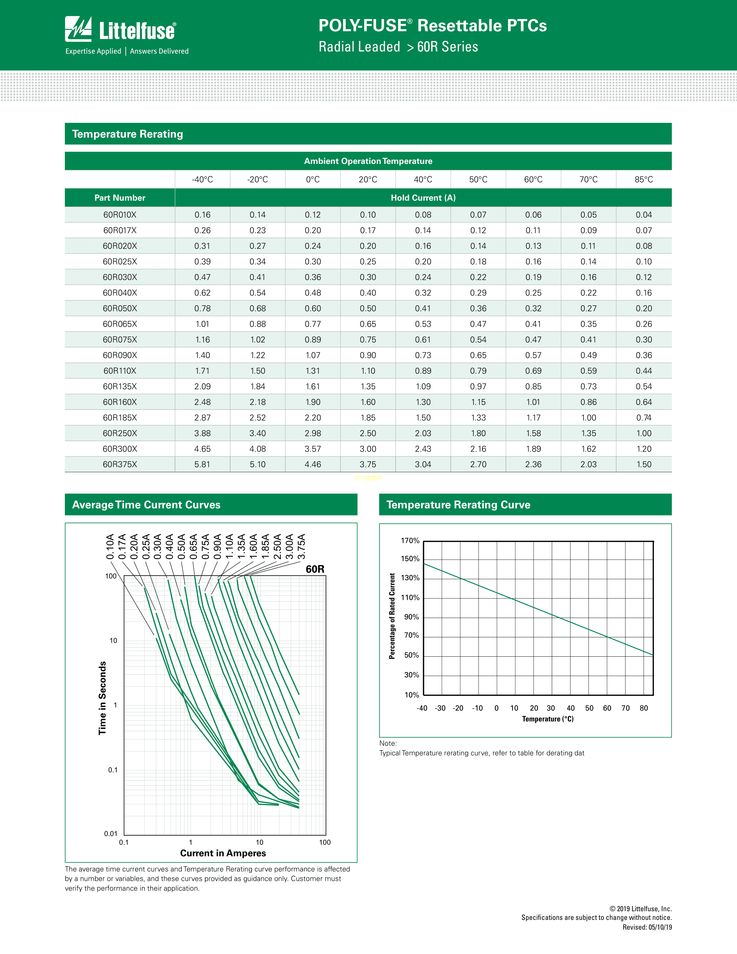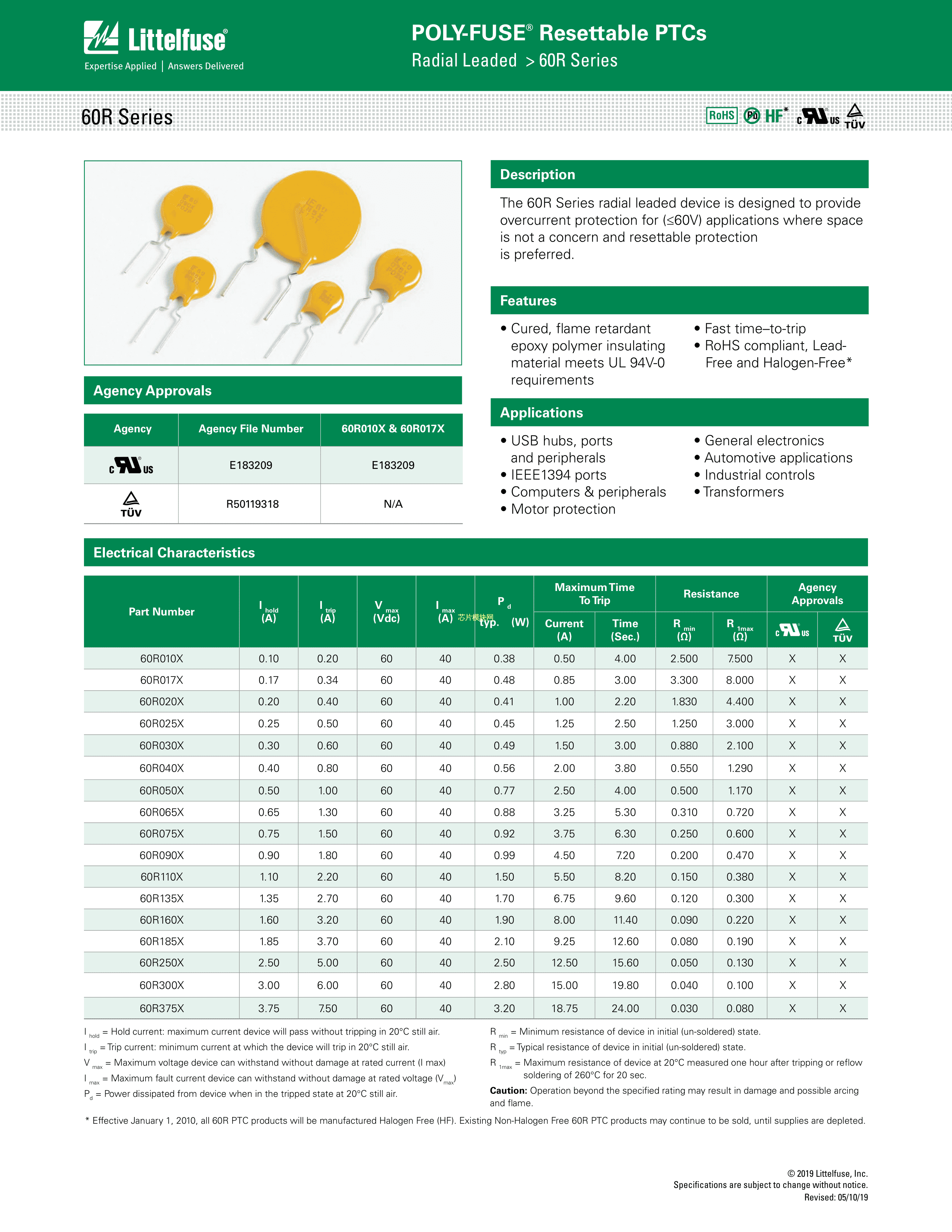 60R250XMR数据手册径向引线封装Littelfuse(美国力特)PDF规格书,中英文下载