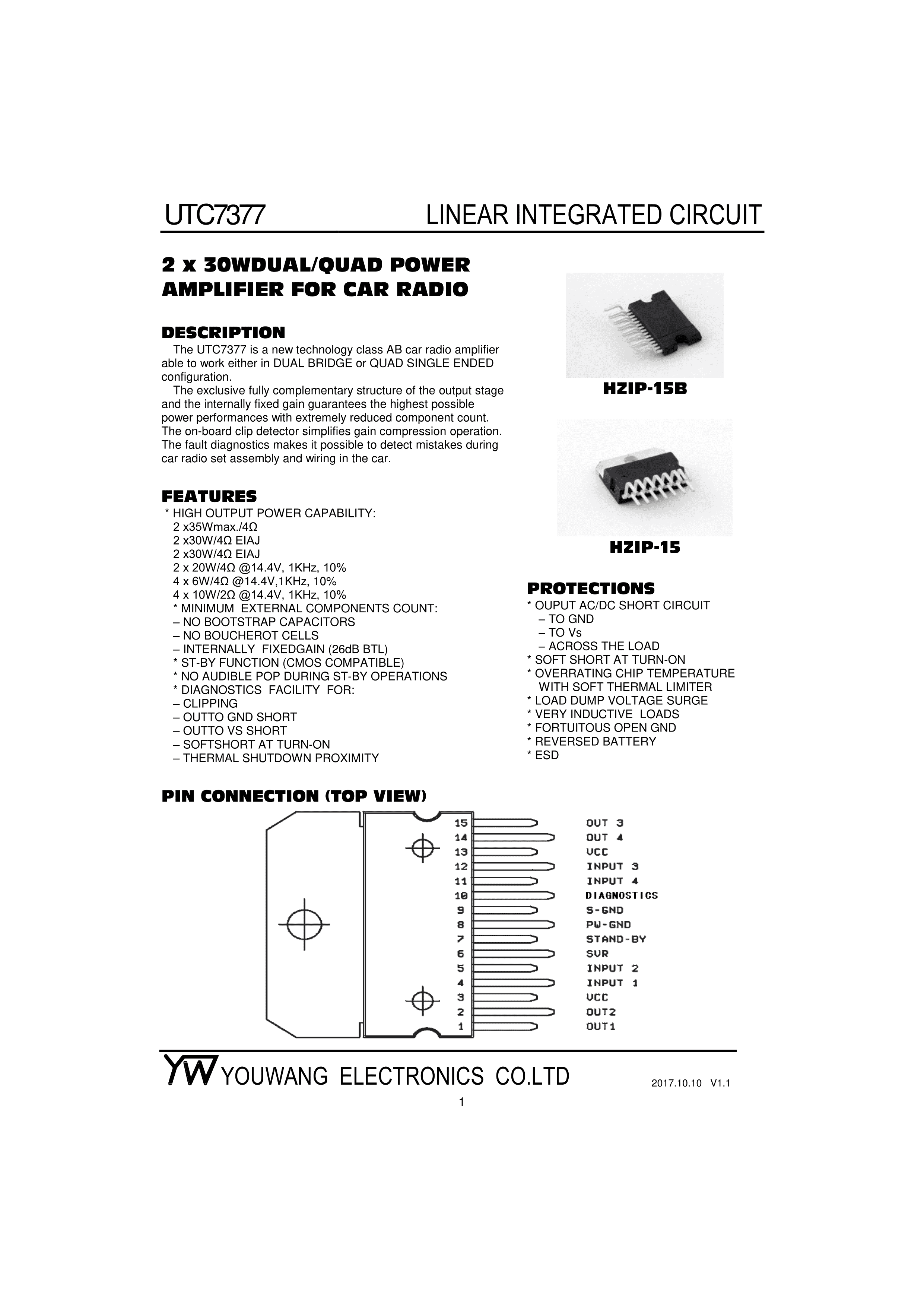 UTC7377数据手册HZIP-15封装YW(友旺)PDF规格书,中英文下载