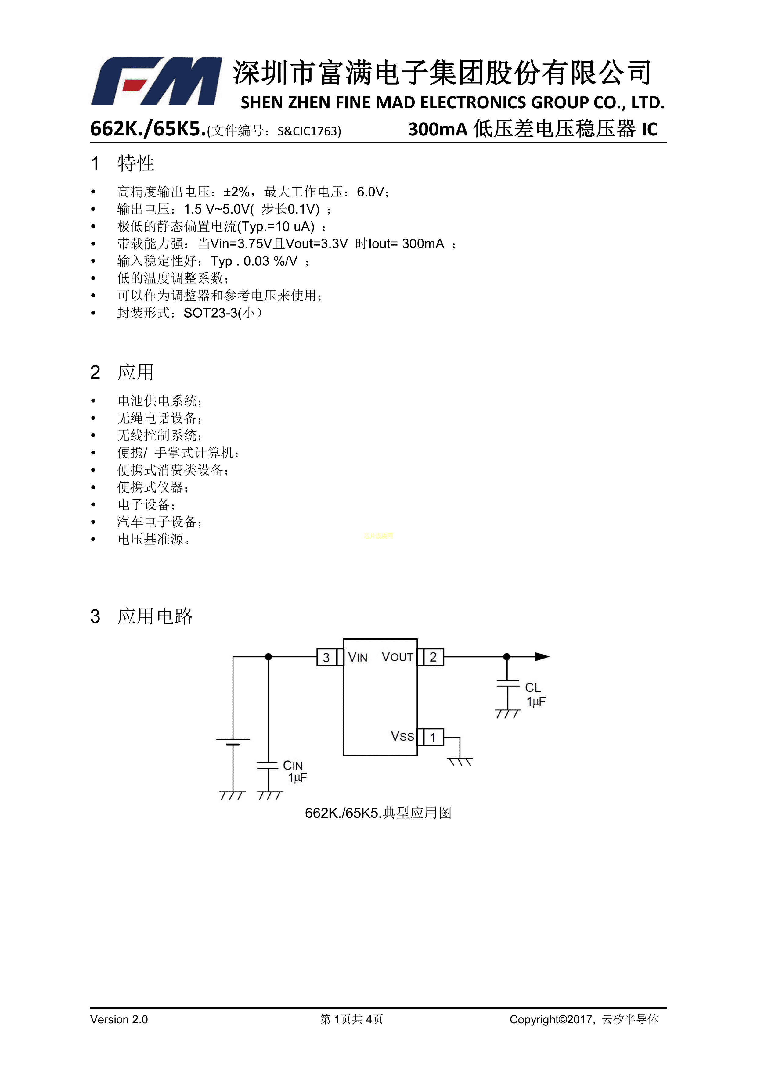 662K.数据手册SOT-23-3封装FM(富满)PDF规格书,中英文下载