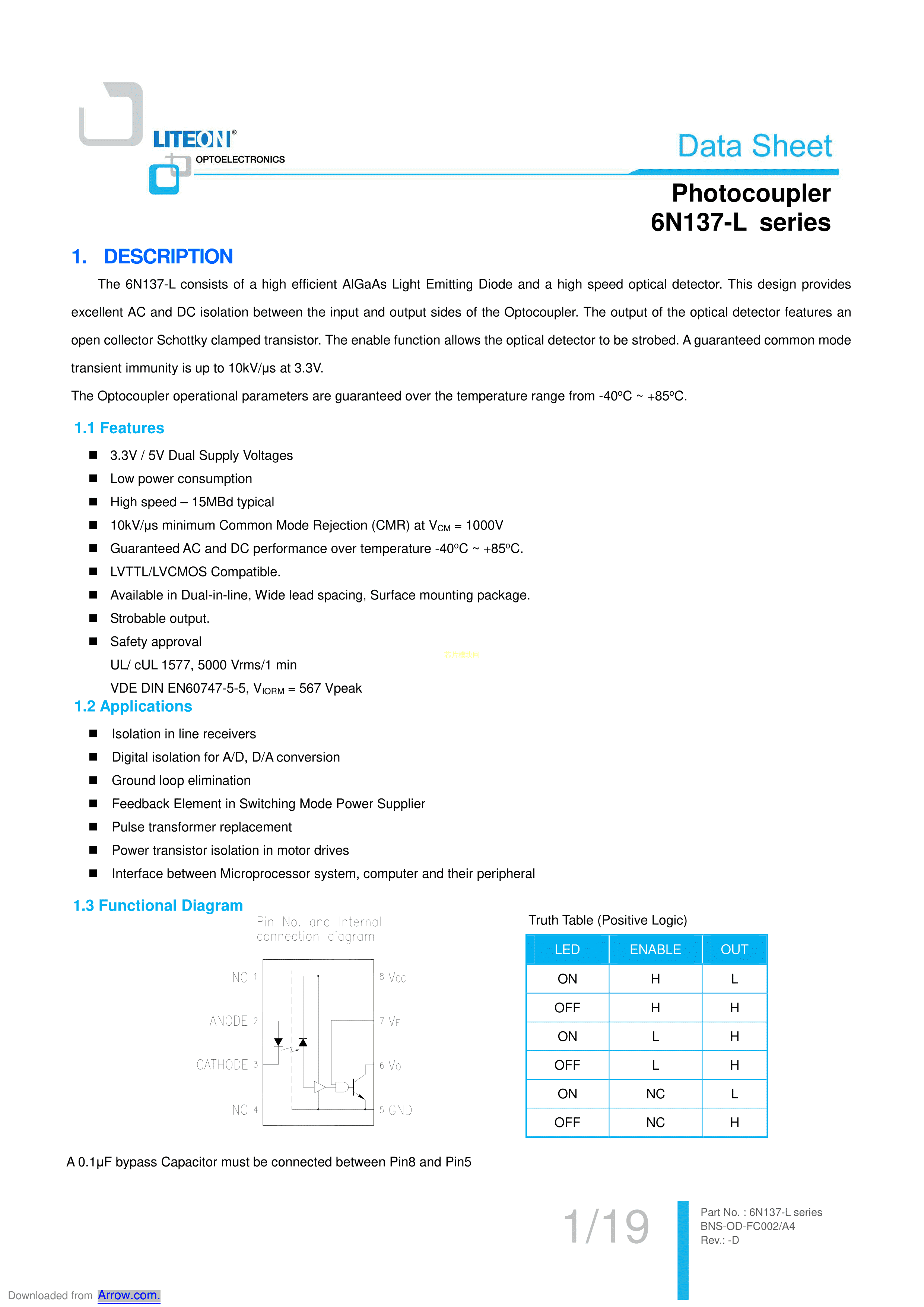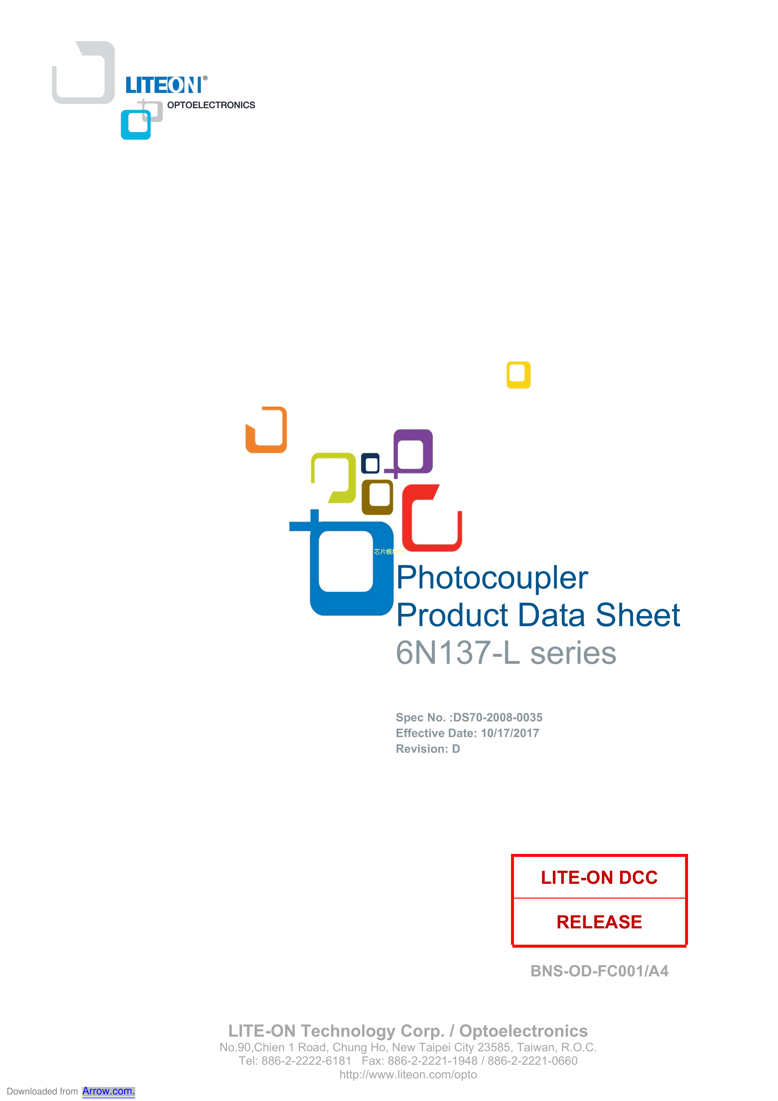 6N137S-TA1-L数据手册SMD-8封装LITEON(台湾光宝)PDF规格书,中英文下载
