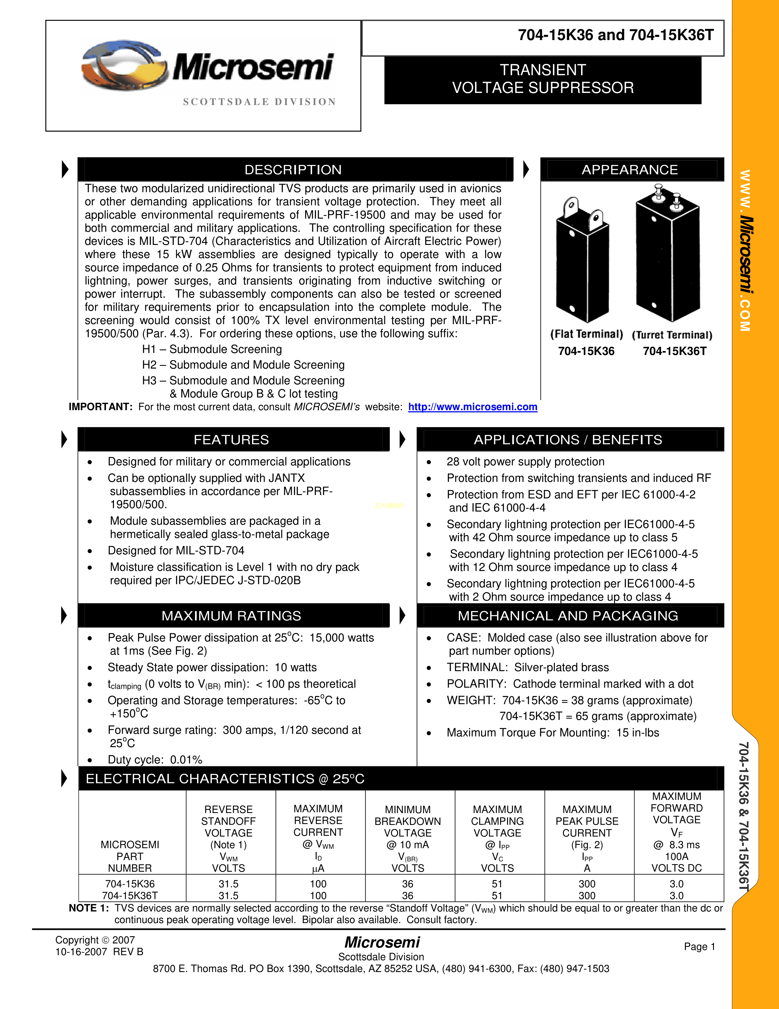 704-15K36H2数据手册-封装Microsemi(美高森美)PDF规格书,中英文下载