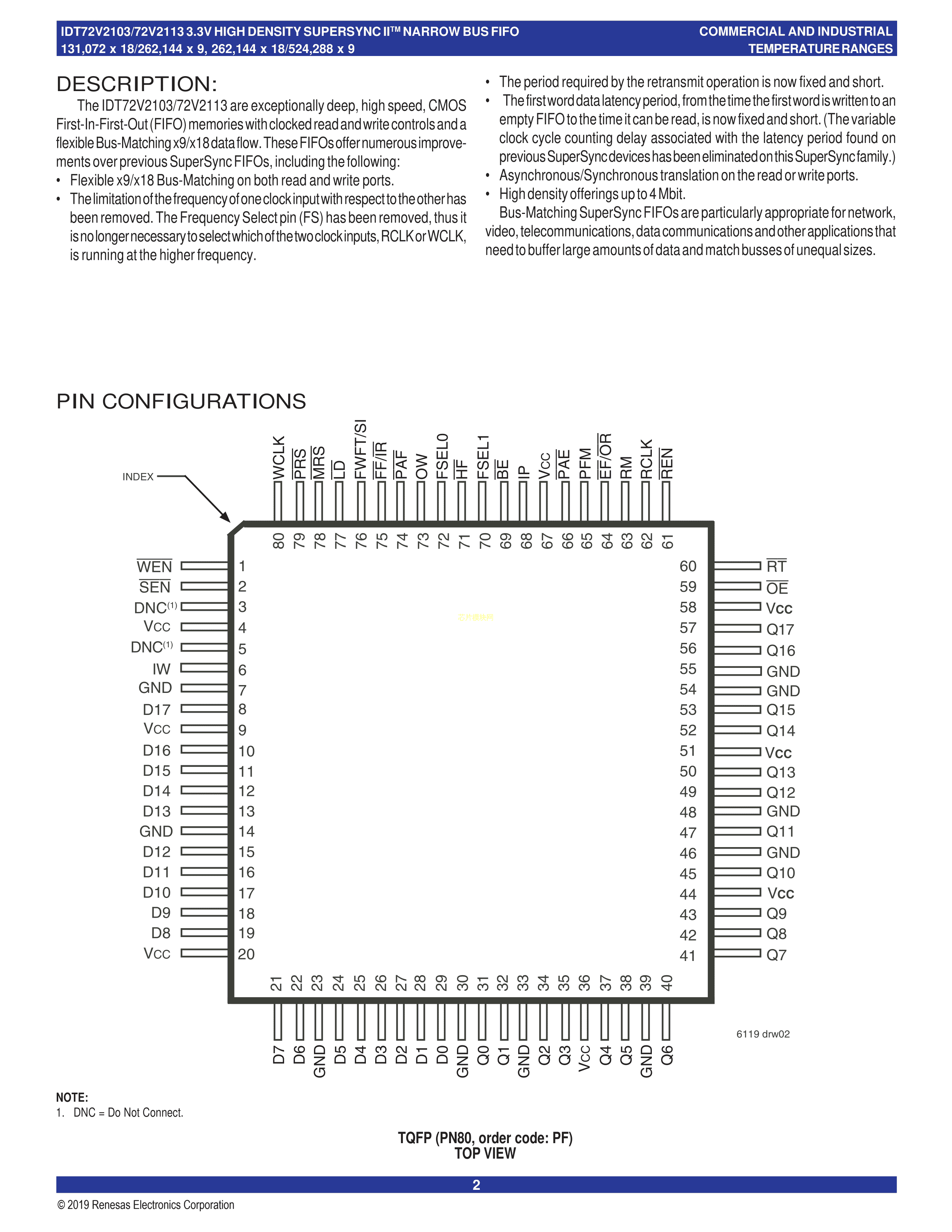 72V2103L6PFG数据手册TQFP-80(14x14)封装RENESAS(瑞萨)-IDTPDF