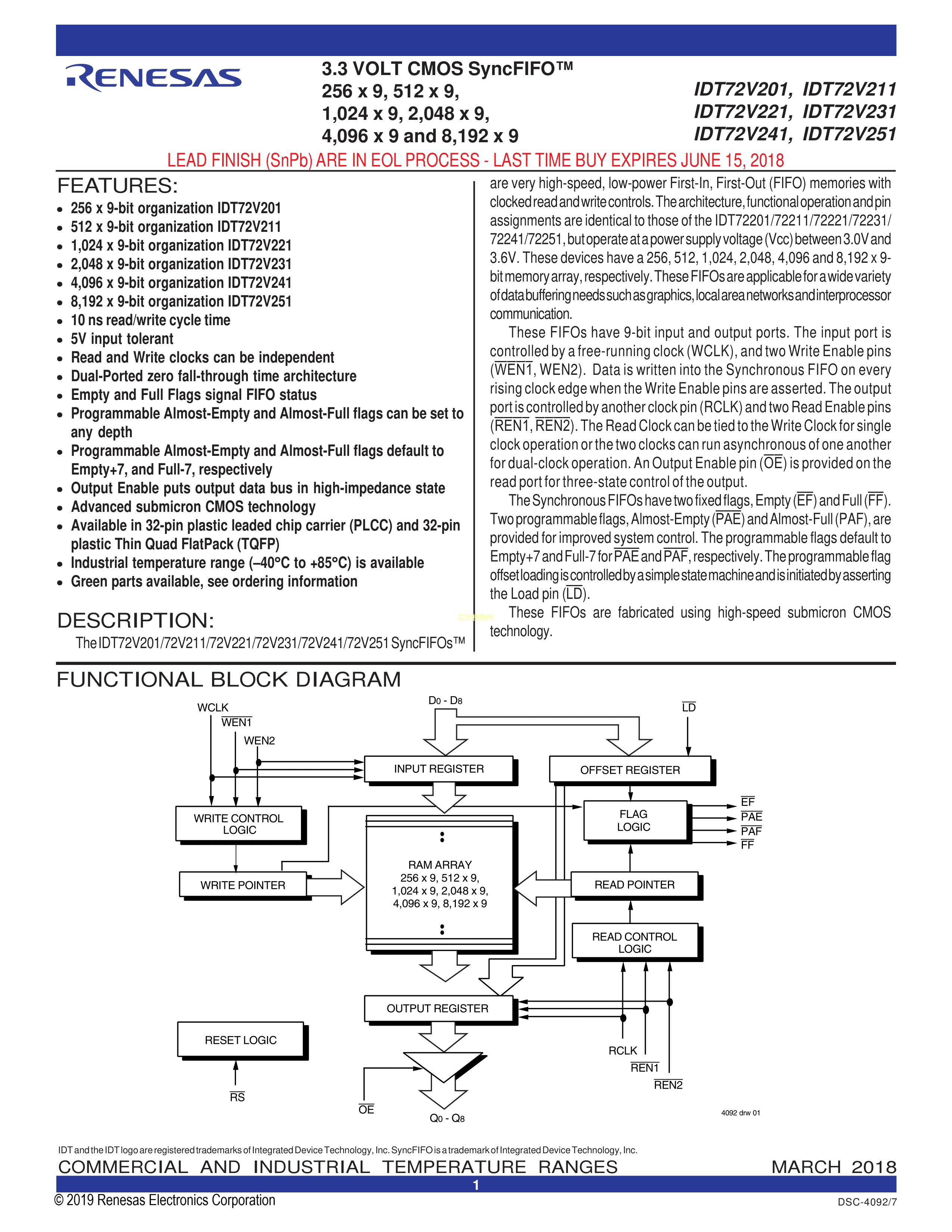 72V211L15PFGI数据手册TQFP-32(7x7)封装RENESAS(瑞萨)-IDTPDF规