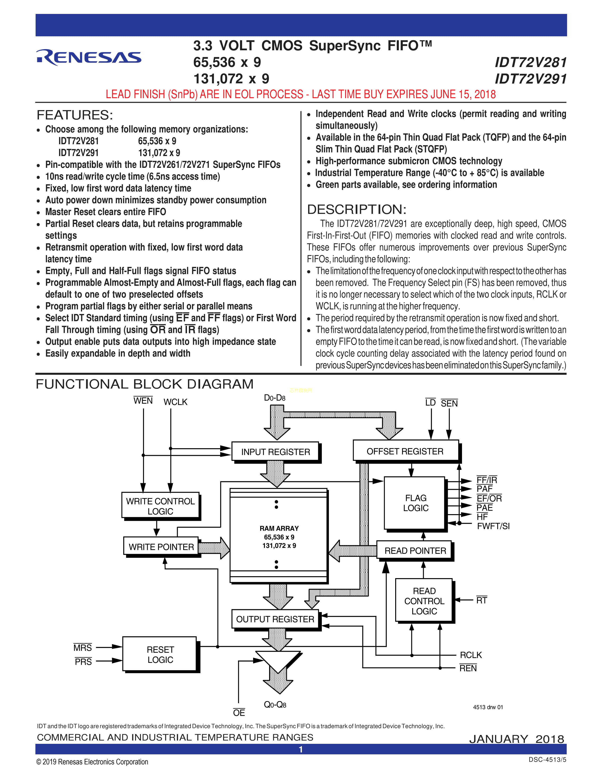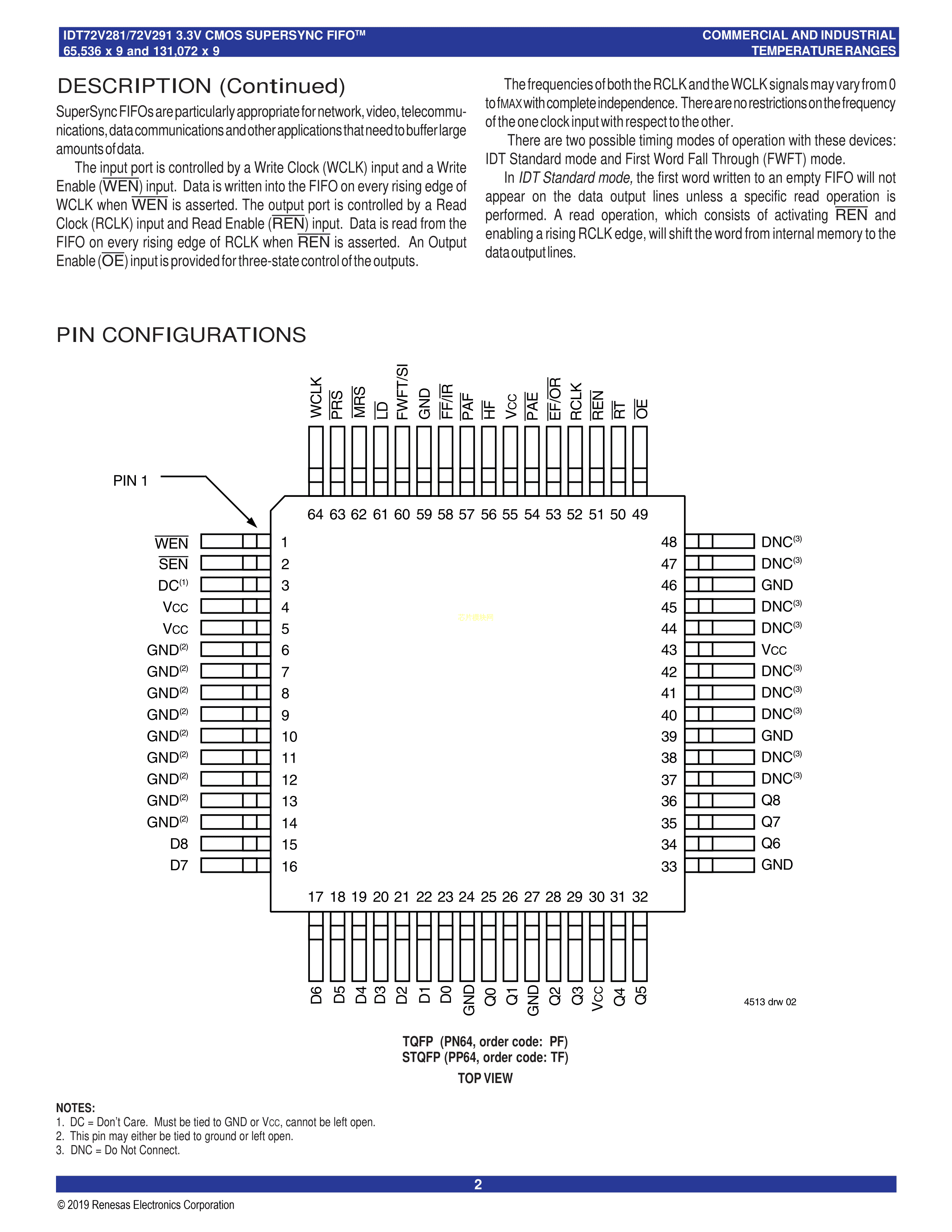 72V291L10TFG8数据手册TQFP-64(10x10)封装RENESAS(瑞萨)-IDTPD