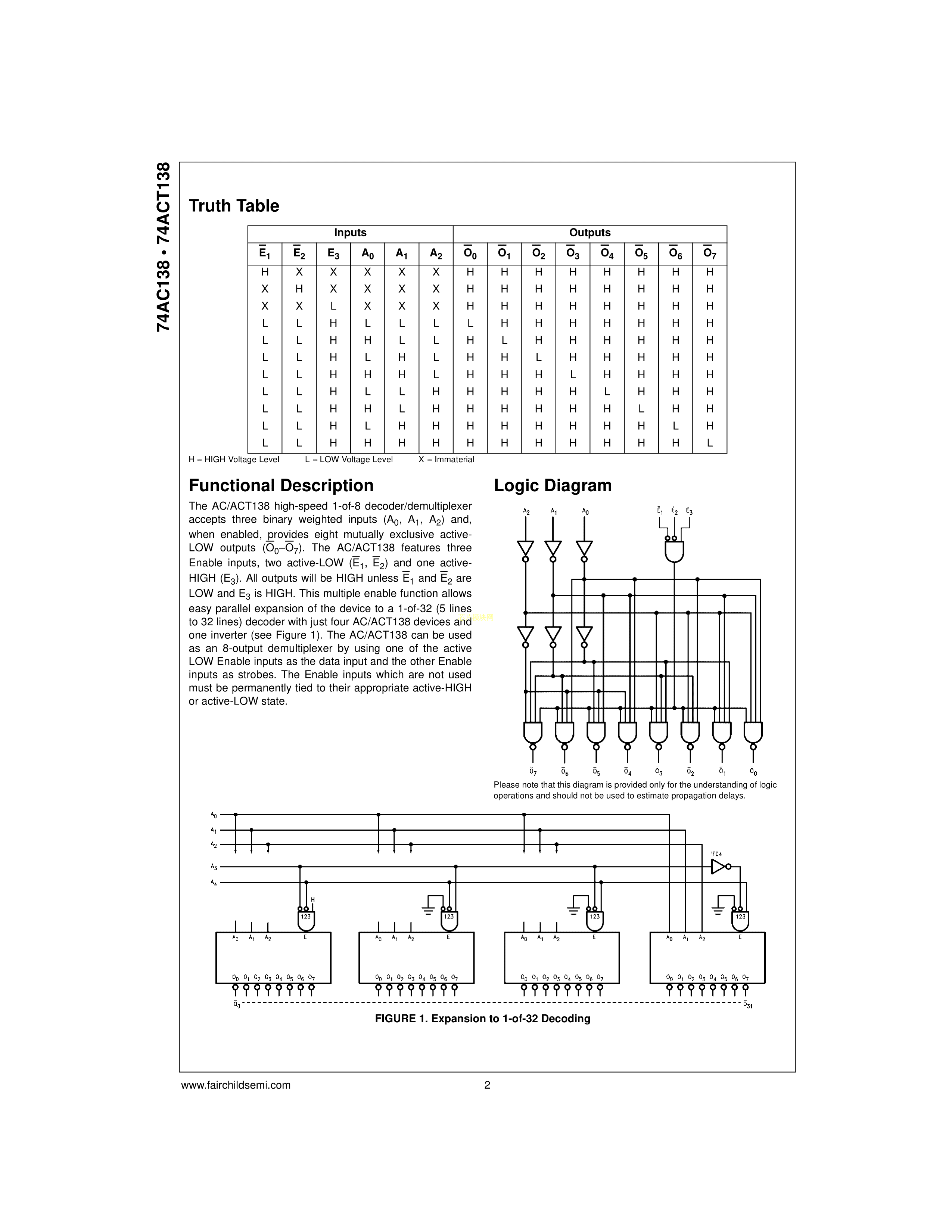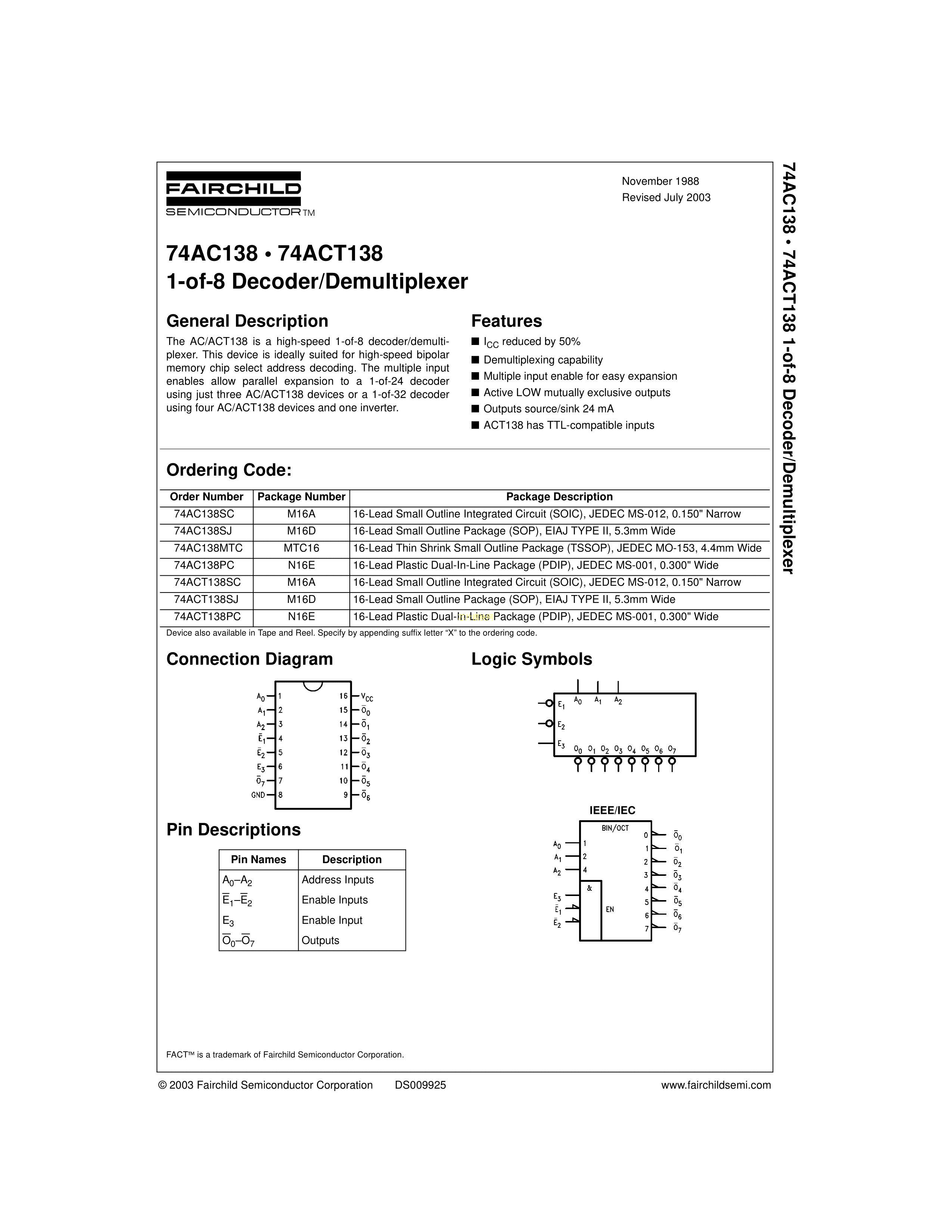 74AC138MTCX数据手册TSSOP-16封装onsemi(安森美)PDF规格书,中英文下载