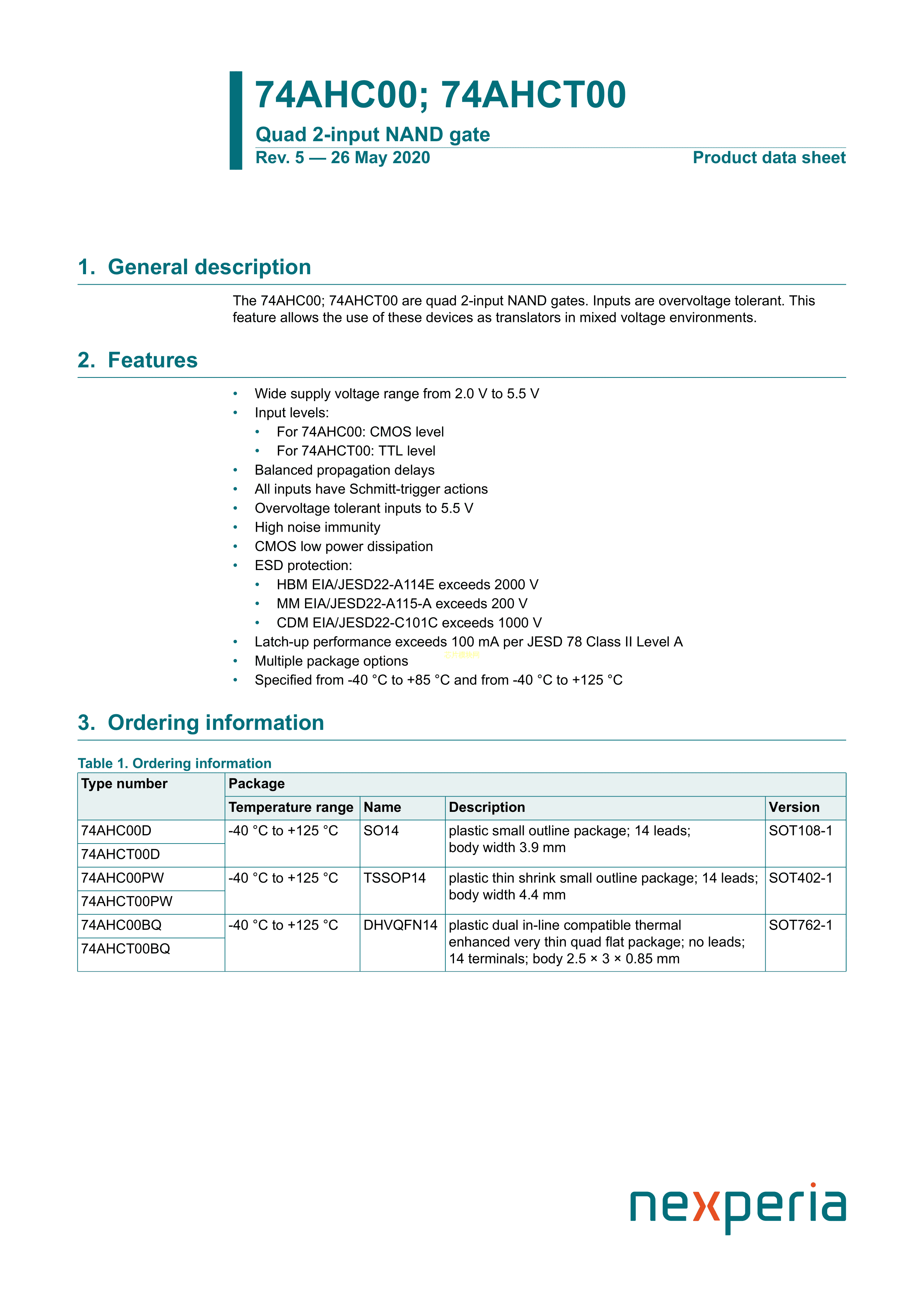 74AHC00BQ115数据手册DHVQFN-14封装Nexperia(安世)PDF规格书,中英文下