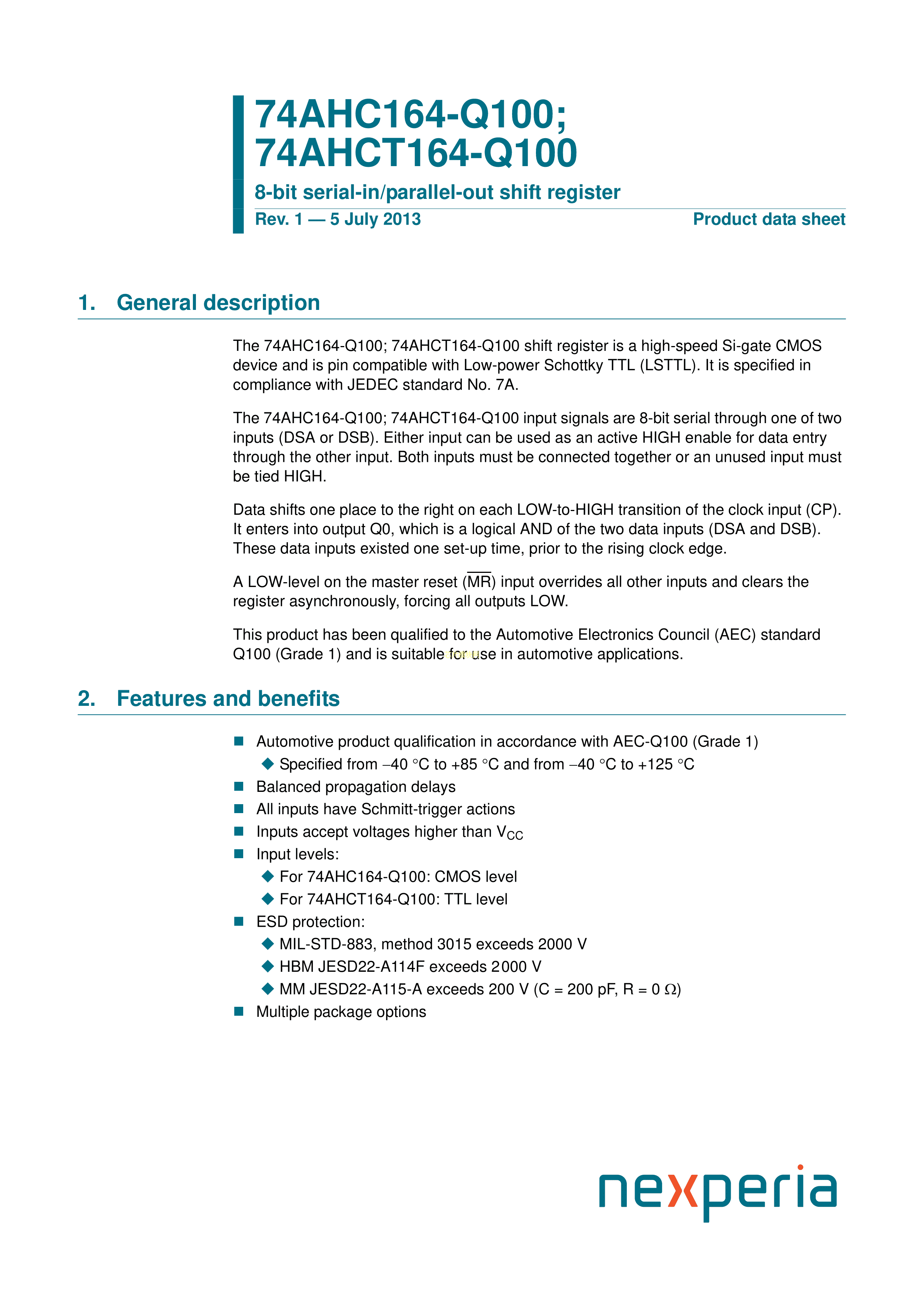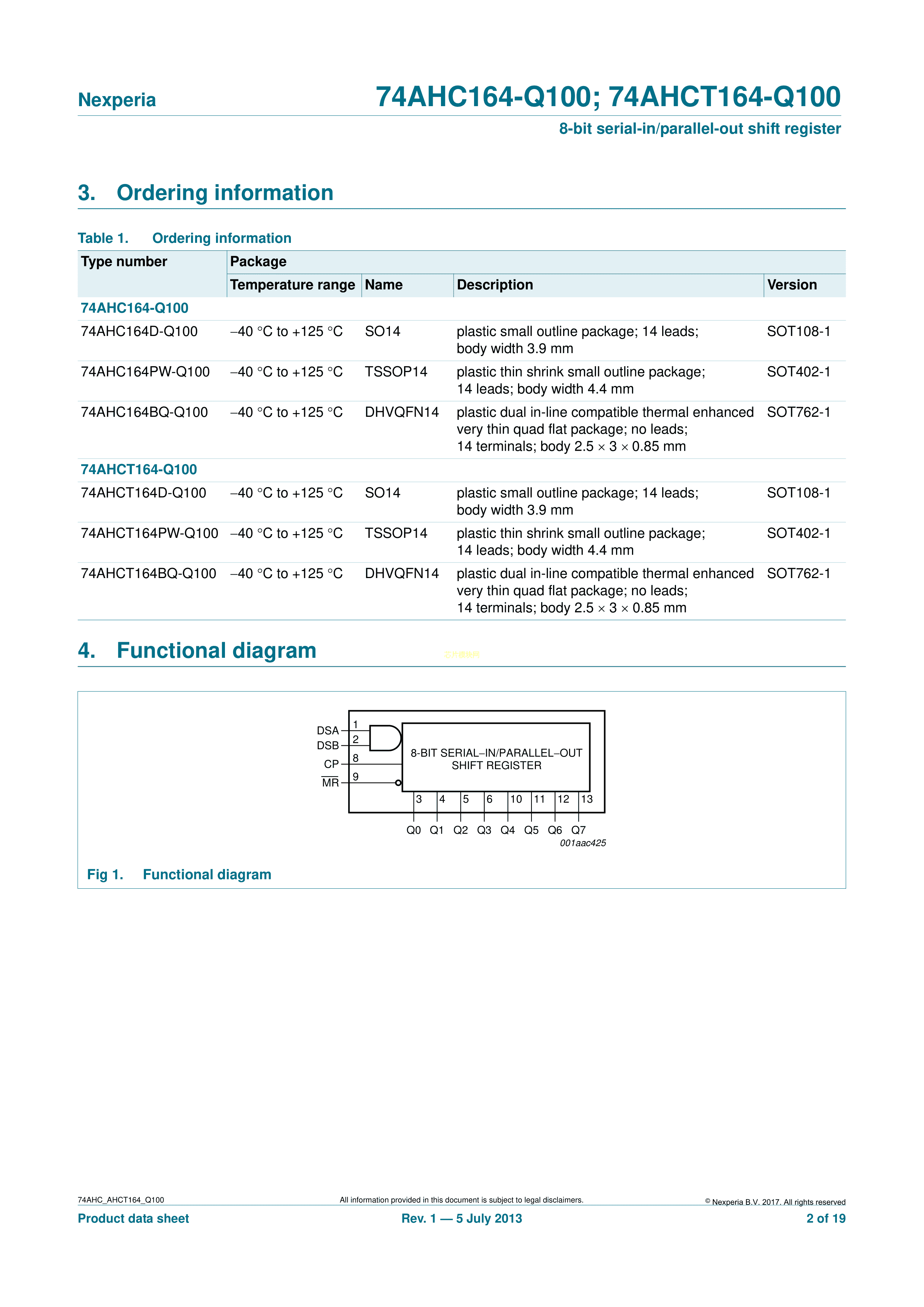 74AHC164D-Q100J数据手册SO-14封装Nexperia(安世)PDF规格书,中英文下载