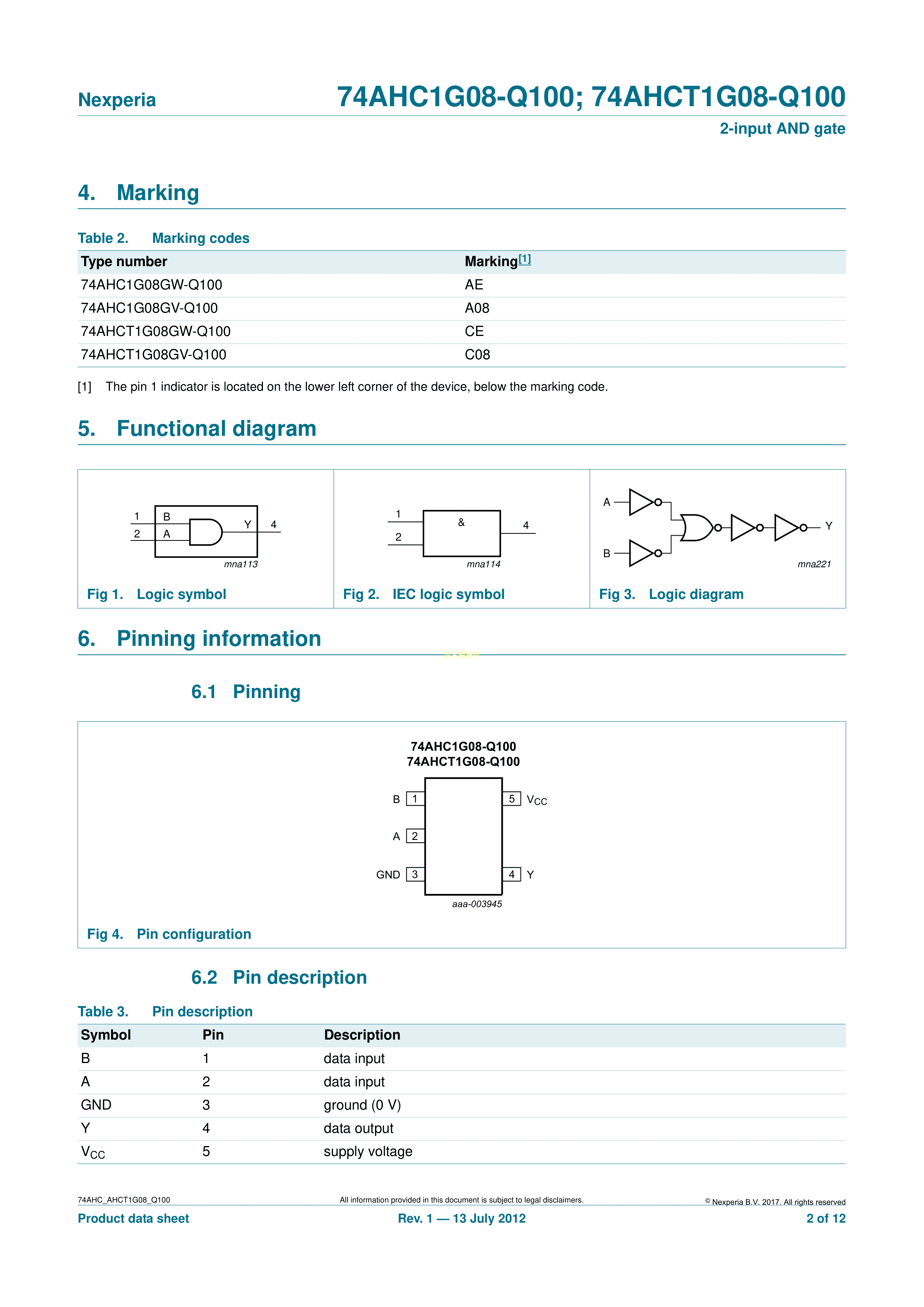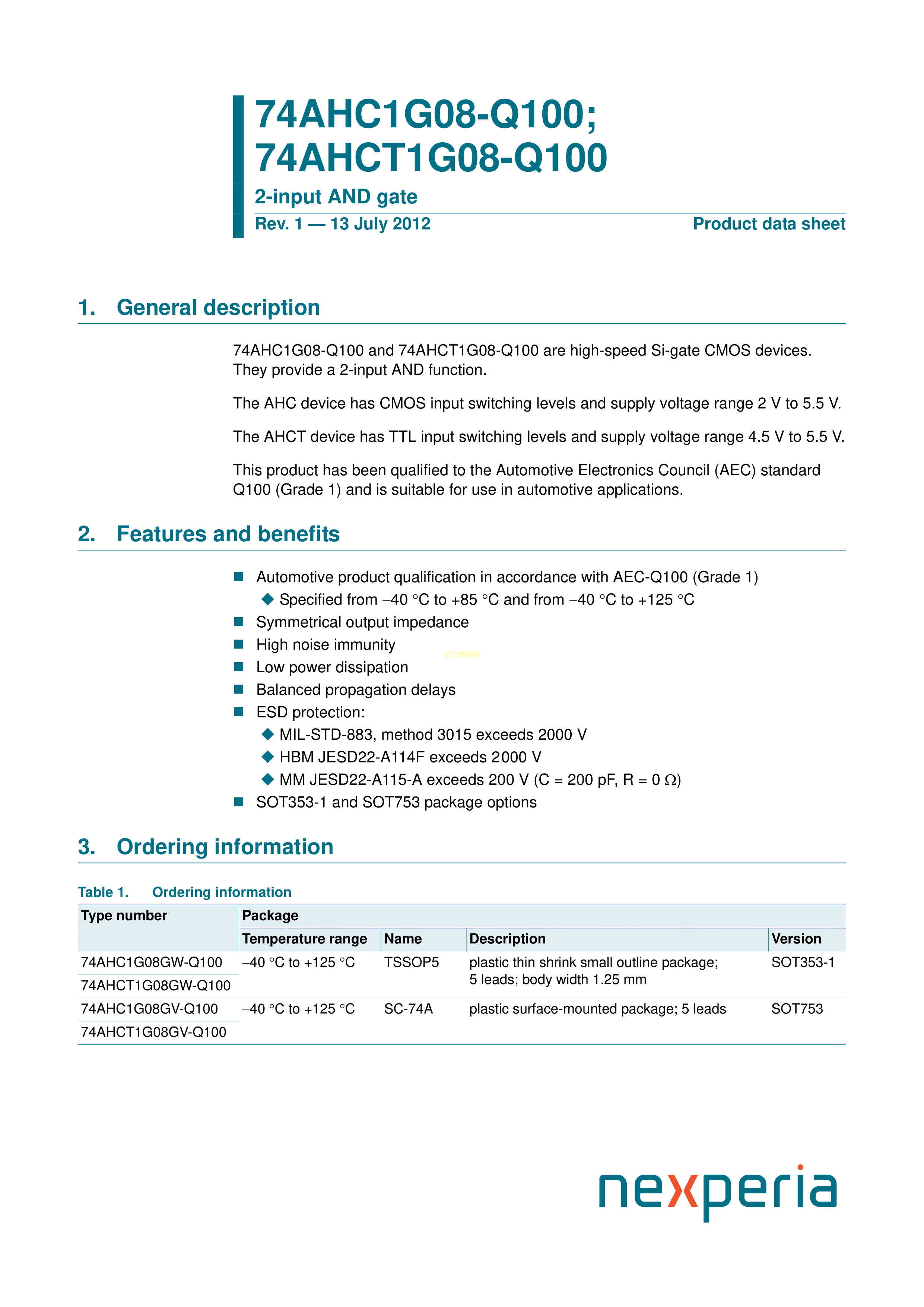 74AHC1G08GV-Q1001数据手册SOT-753封装Nexperia(安世)PDF规格书,中