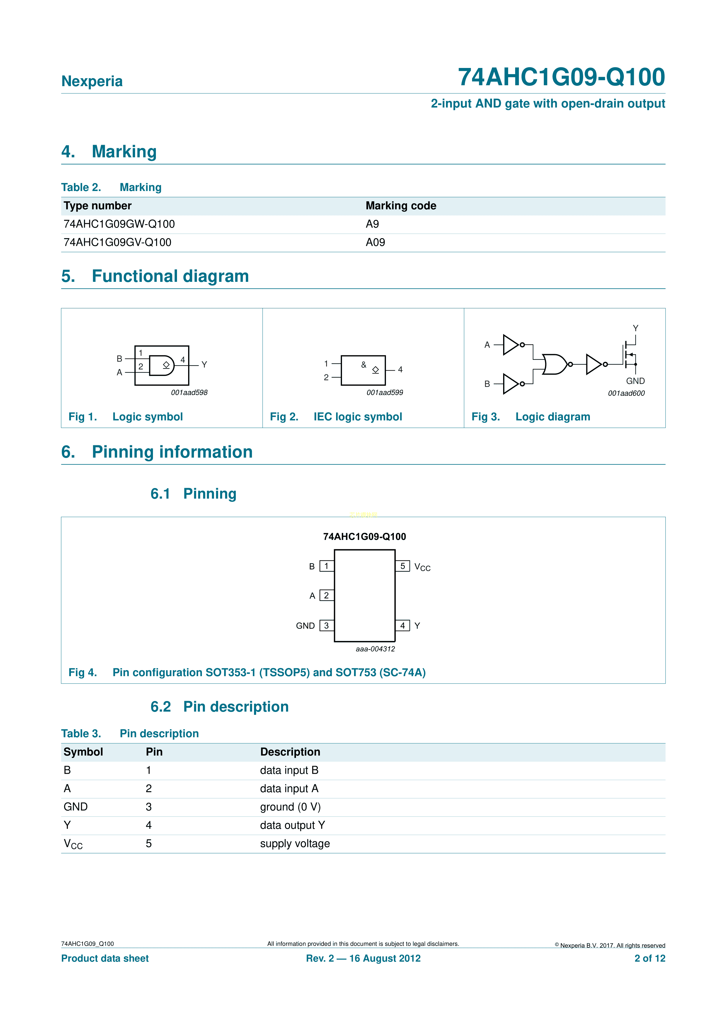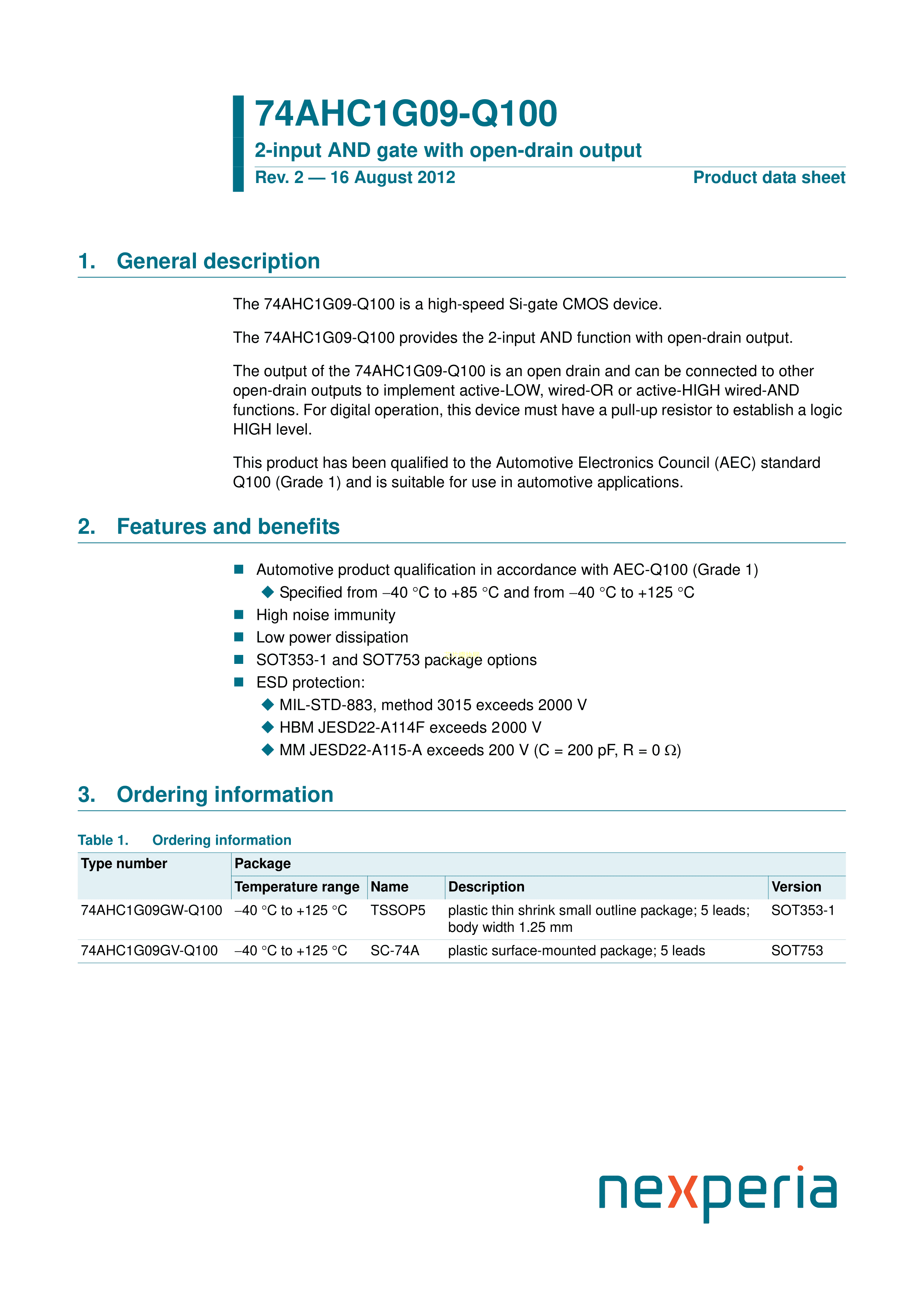 74AHC1G09GV-Q100H数据手册SOT-753封装Nexperia(安世)PDF规格书,中