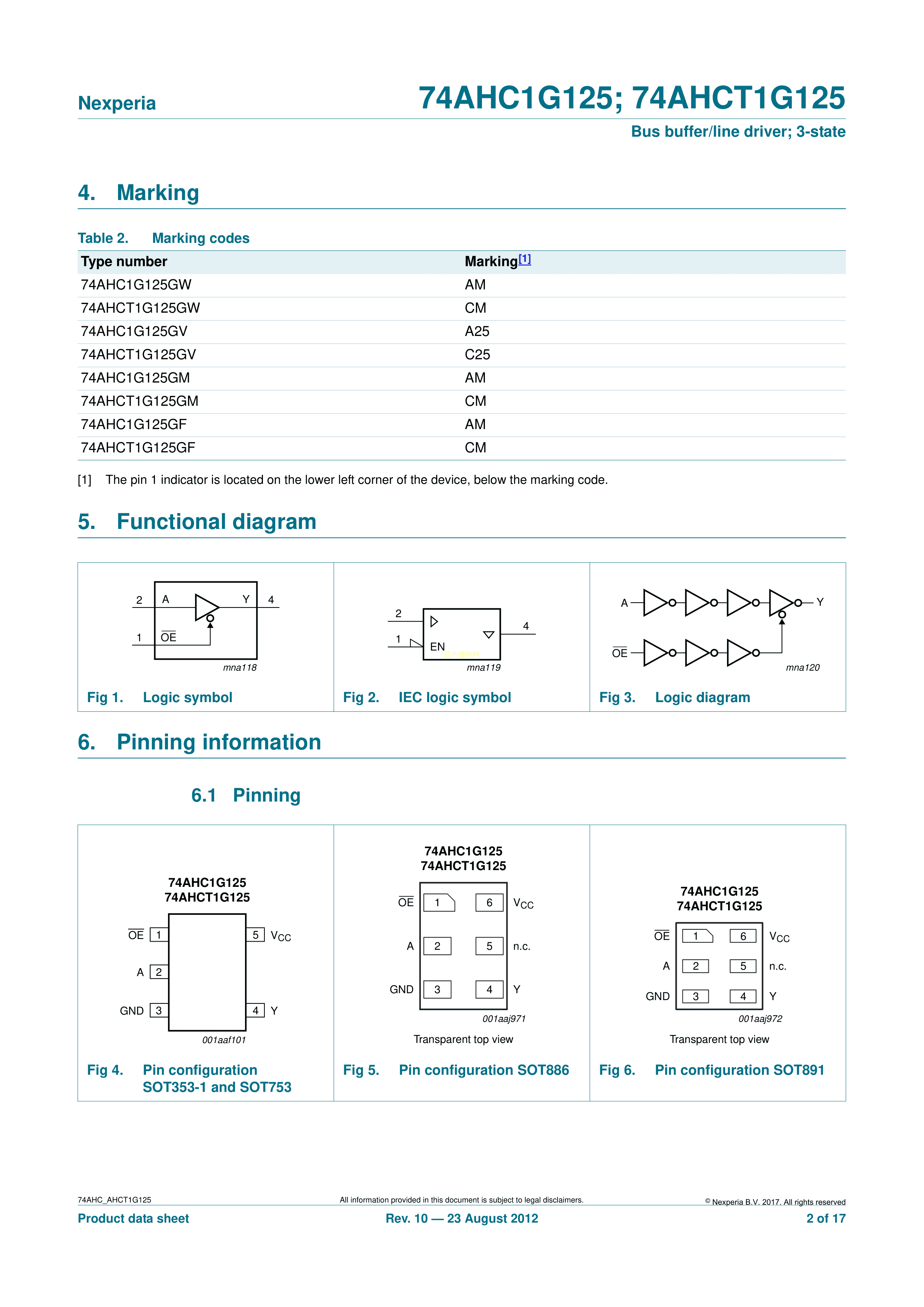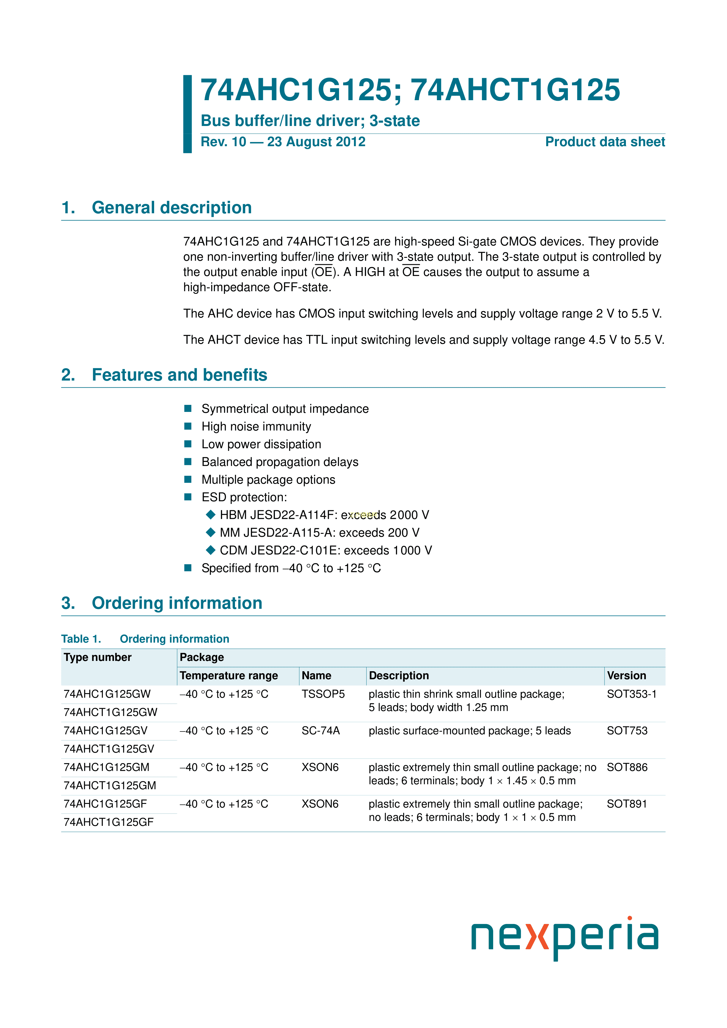 74AHC1G125GV125数据手册SC-74A封装Nexperia(安世)PDF规格书,中英文下