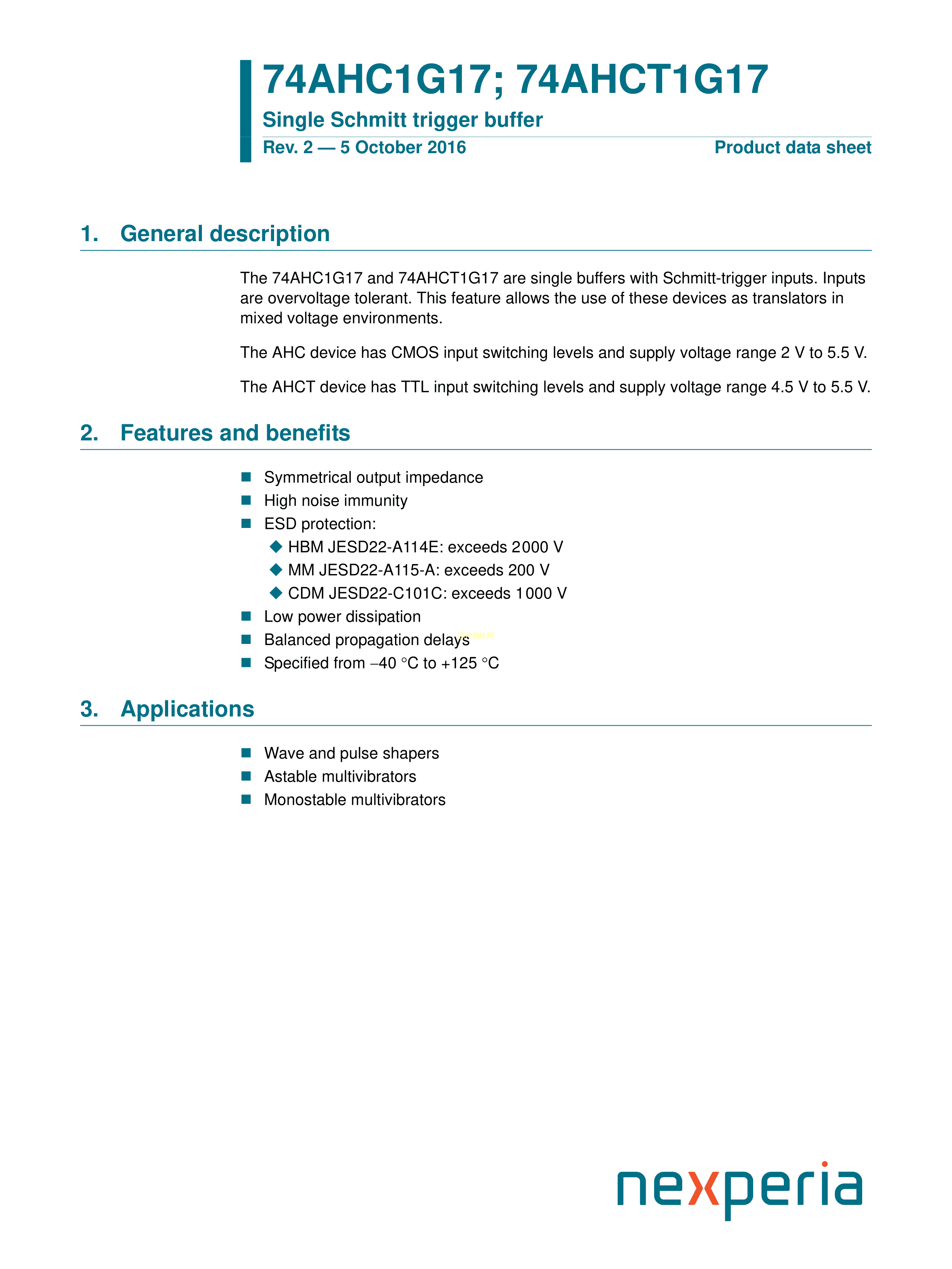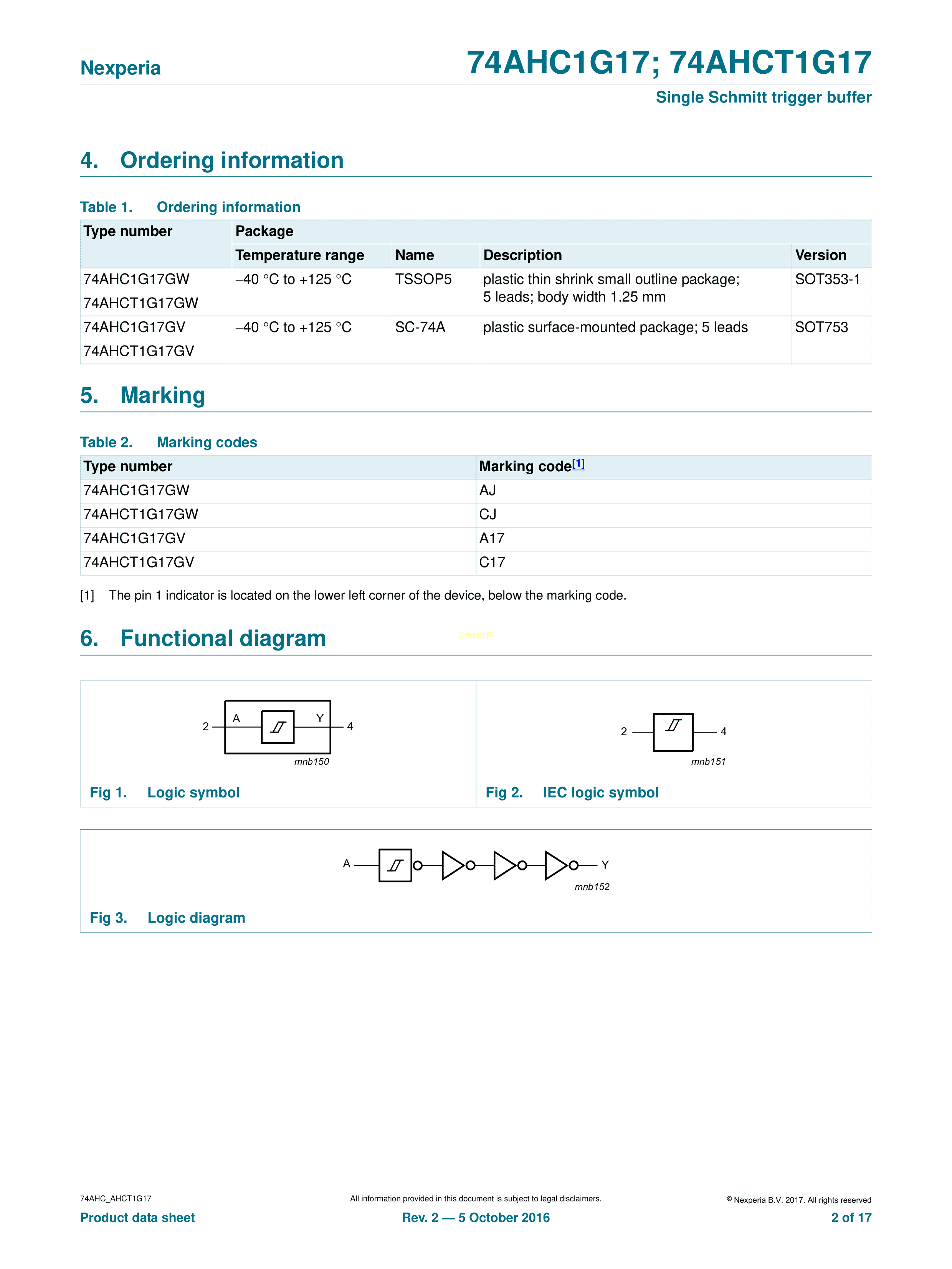 74AHC1G17GVH数据手册SOT-753封装Nexperia(安世)PDF规格书,中英文下载