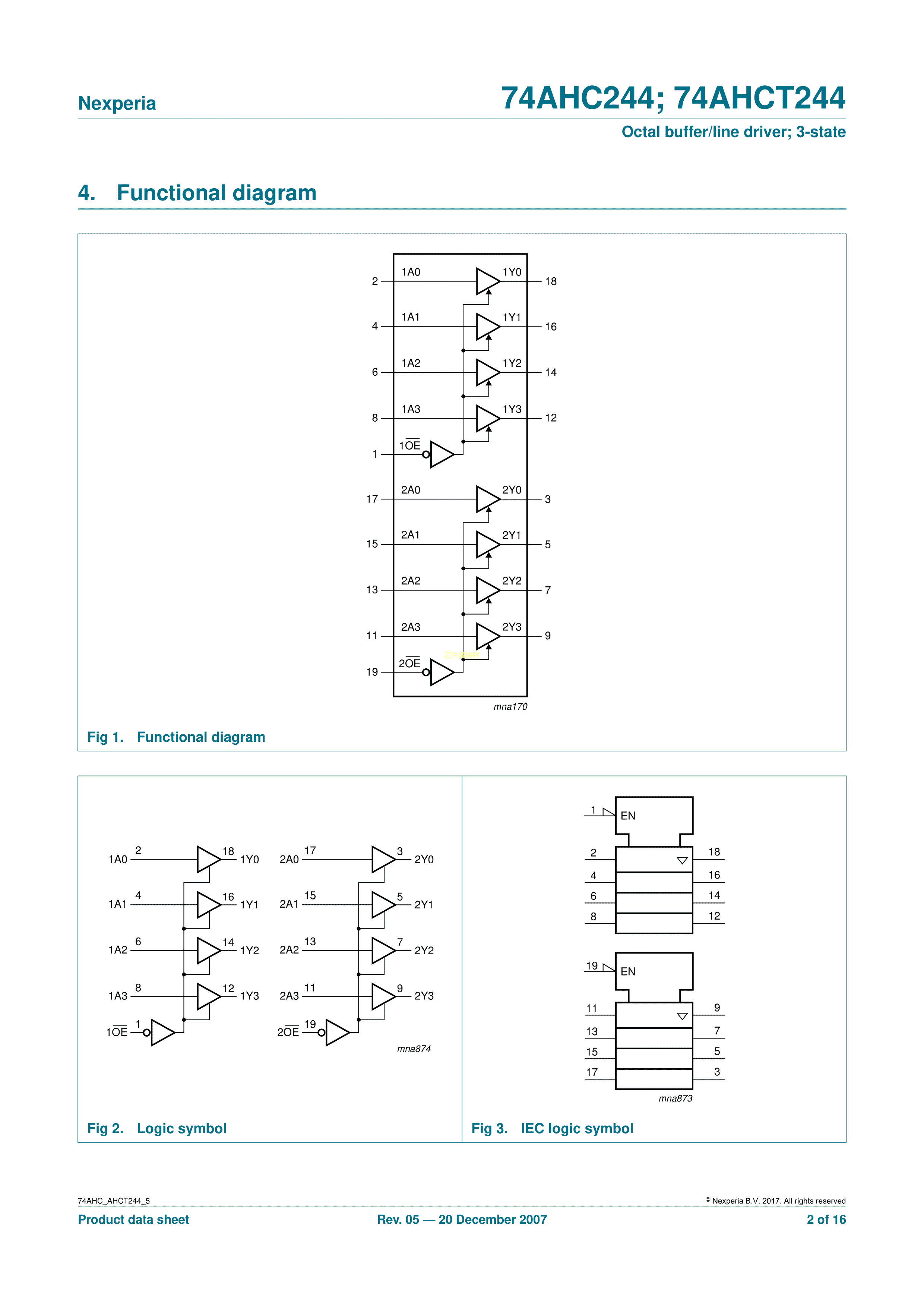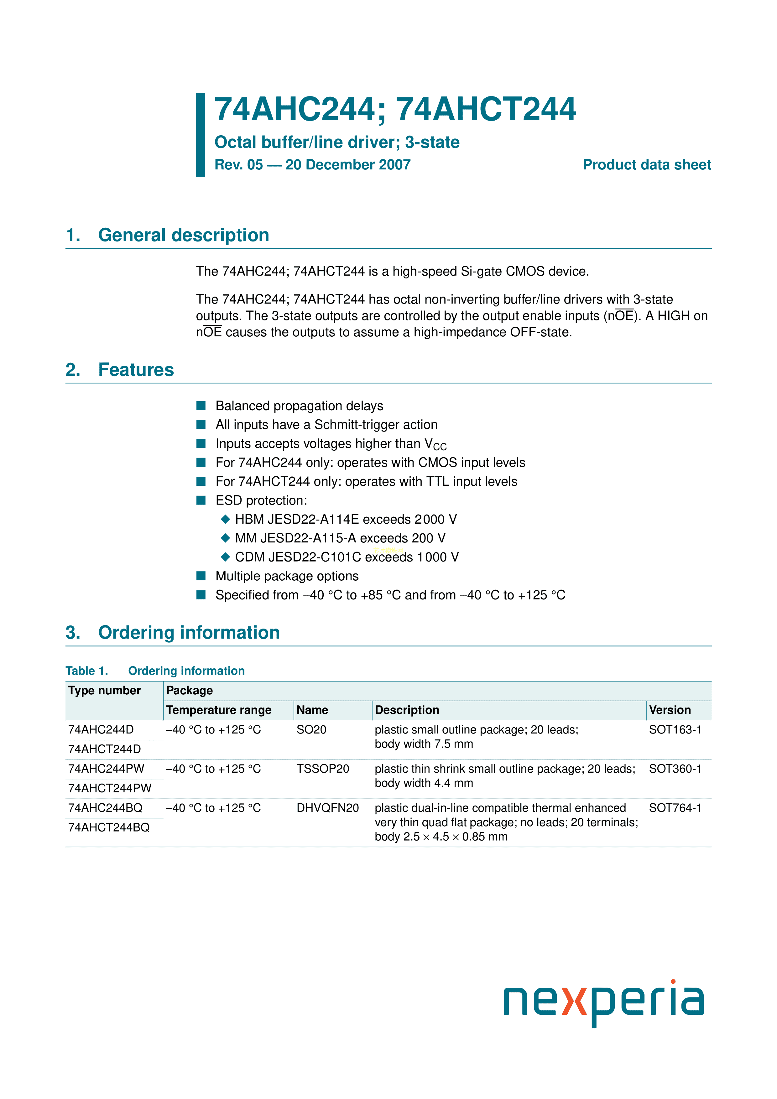 74AHC244D112数据手册SO-20封装Nexperia(安世)PDF规格书,中英文下载