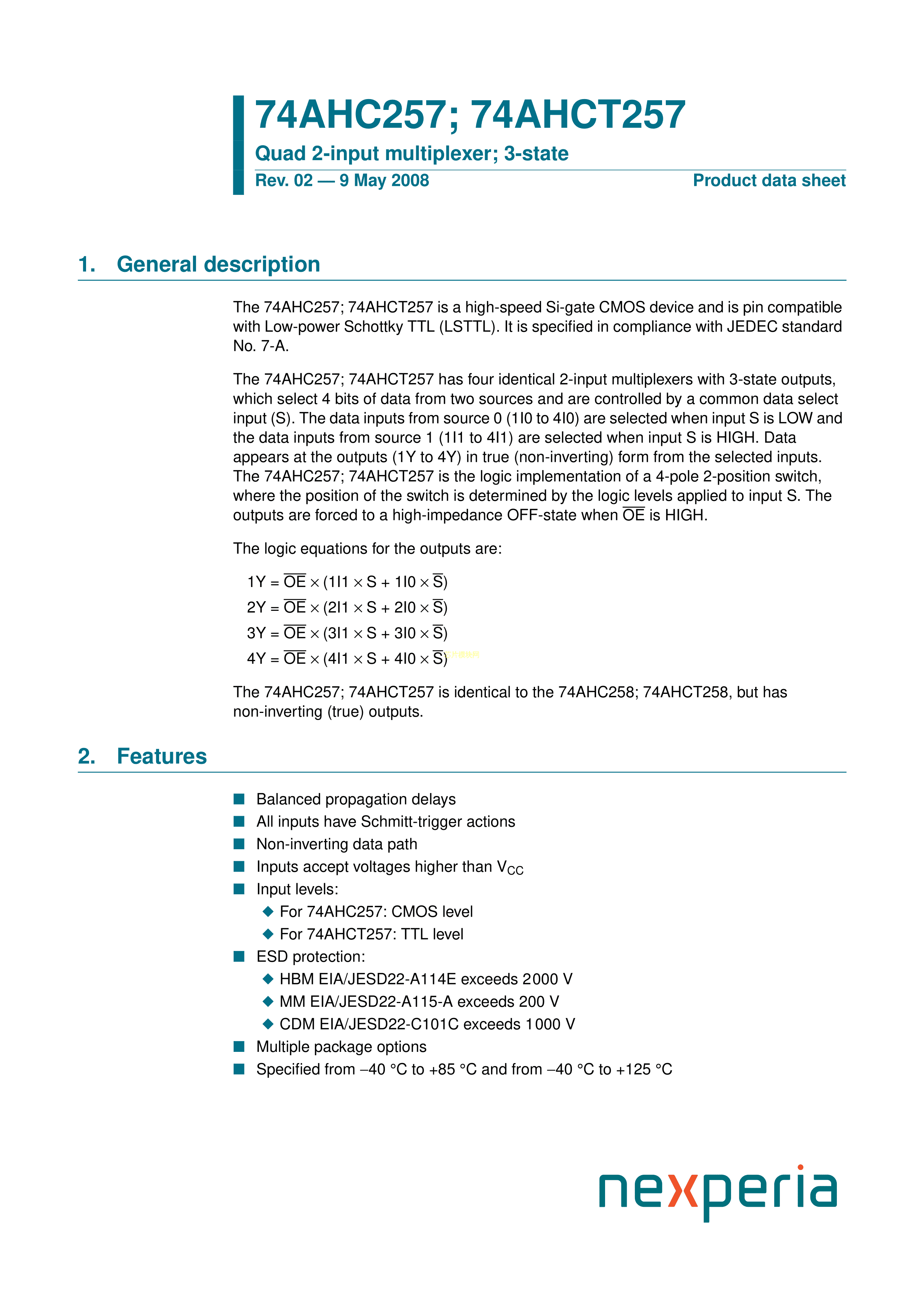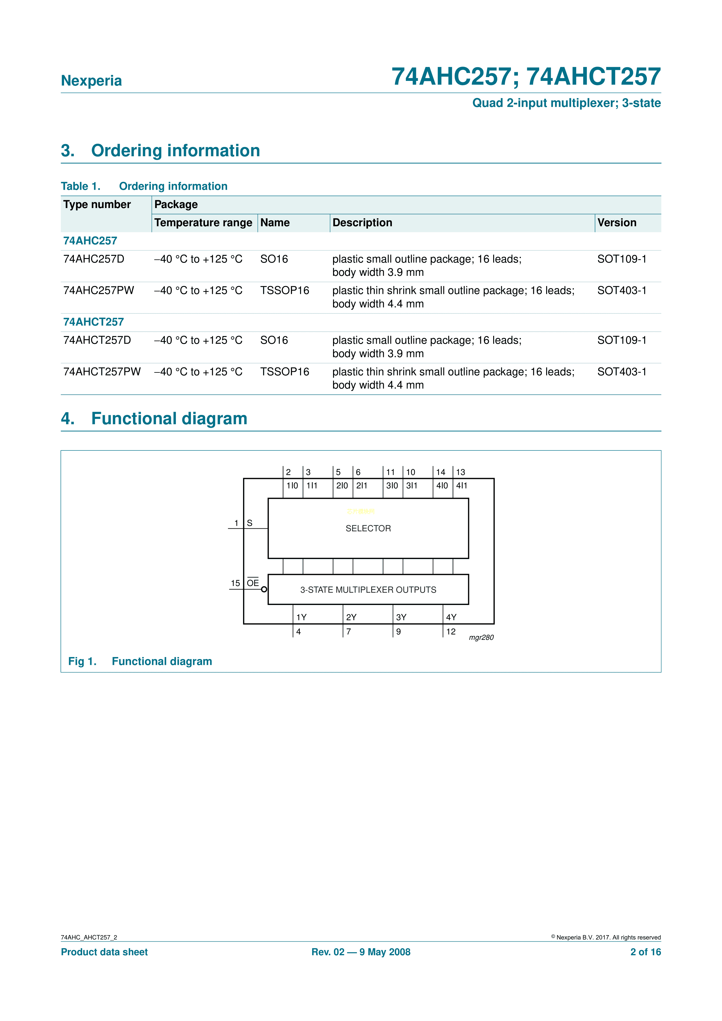 74AHC257PW118数据手册SOT403-1封装Nexperia(安世)PDF规格书,中英文下