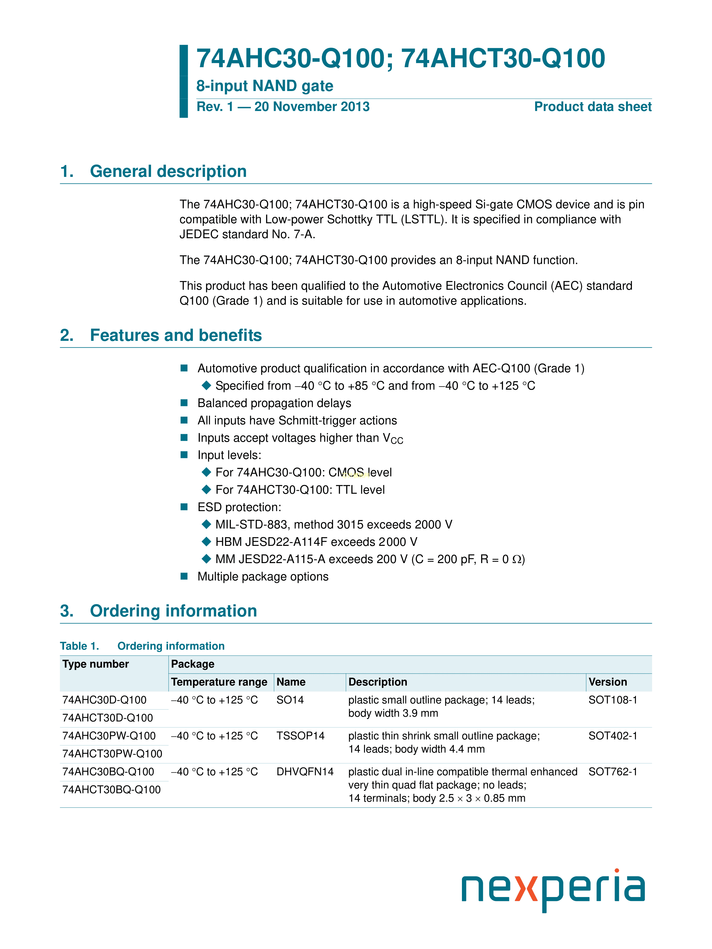 74AHC30D-Q100J数据手册SO-14封装Nexperia(安世)PDF规格书,中英文下载